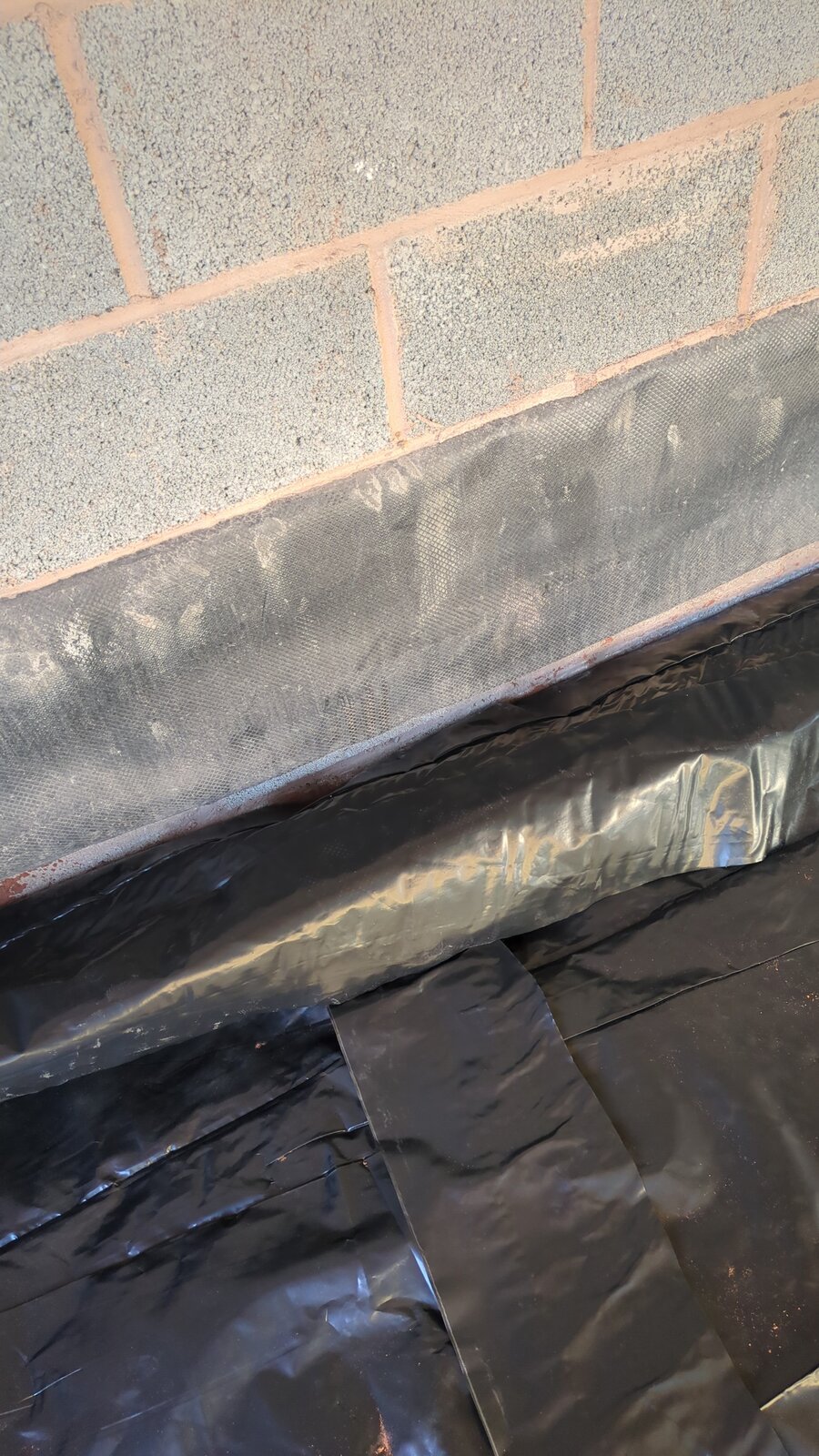 my walls went up before the floor slab, bricklayer left a DPM skirt