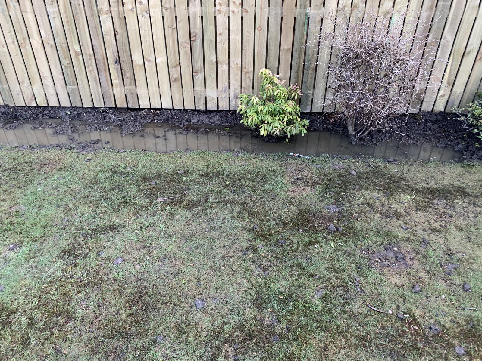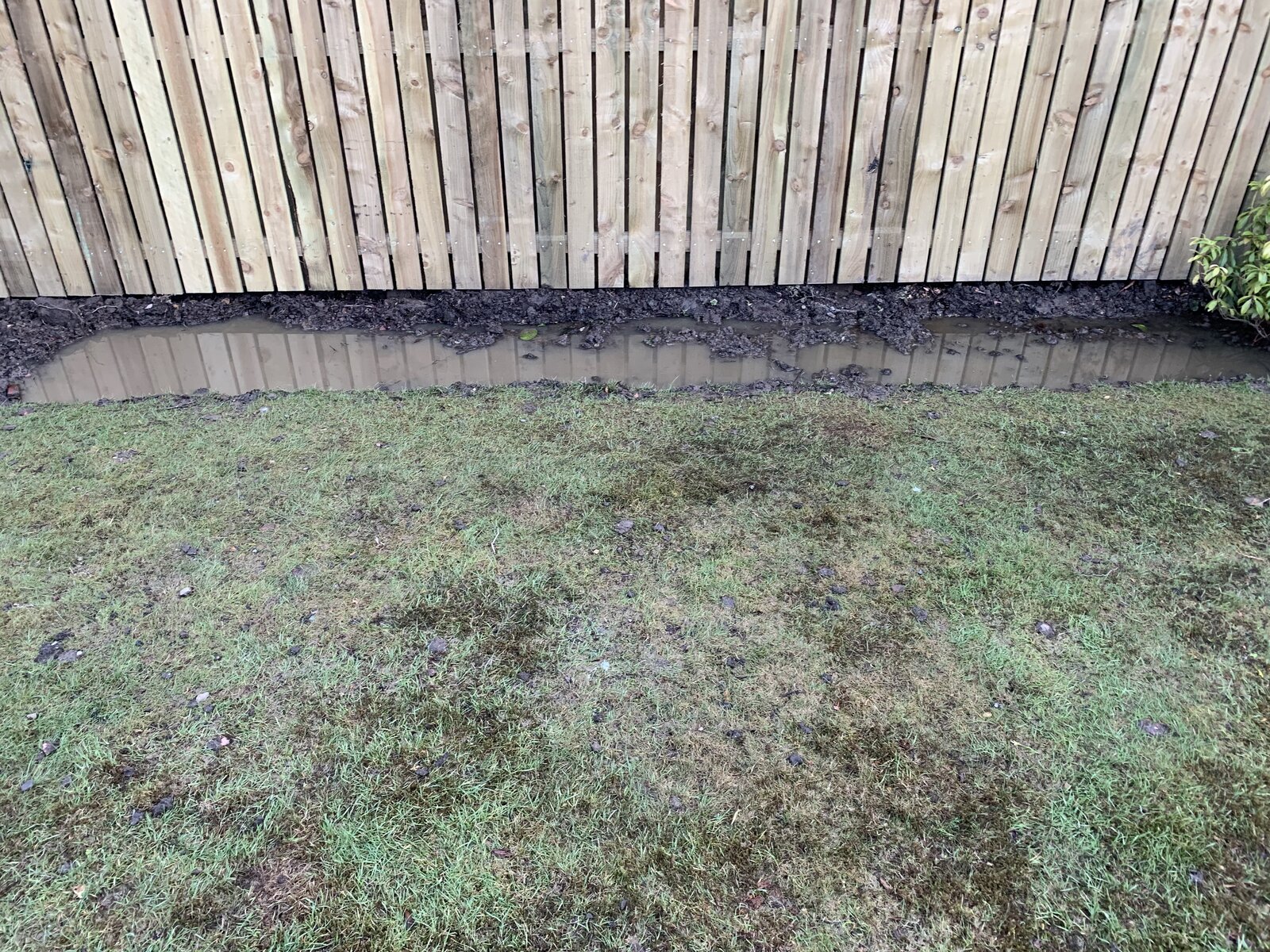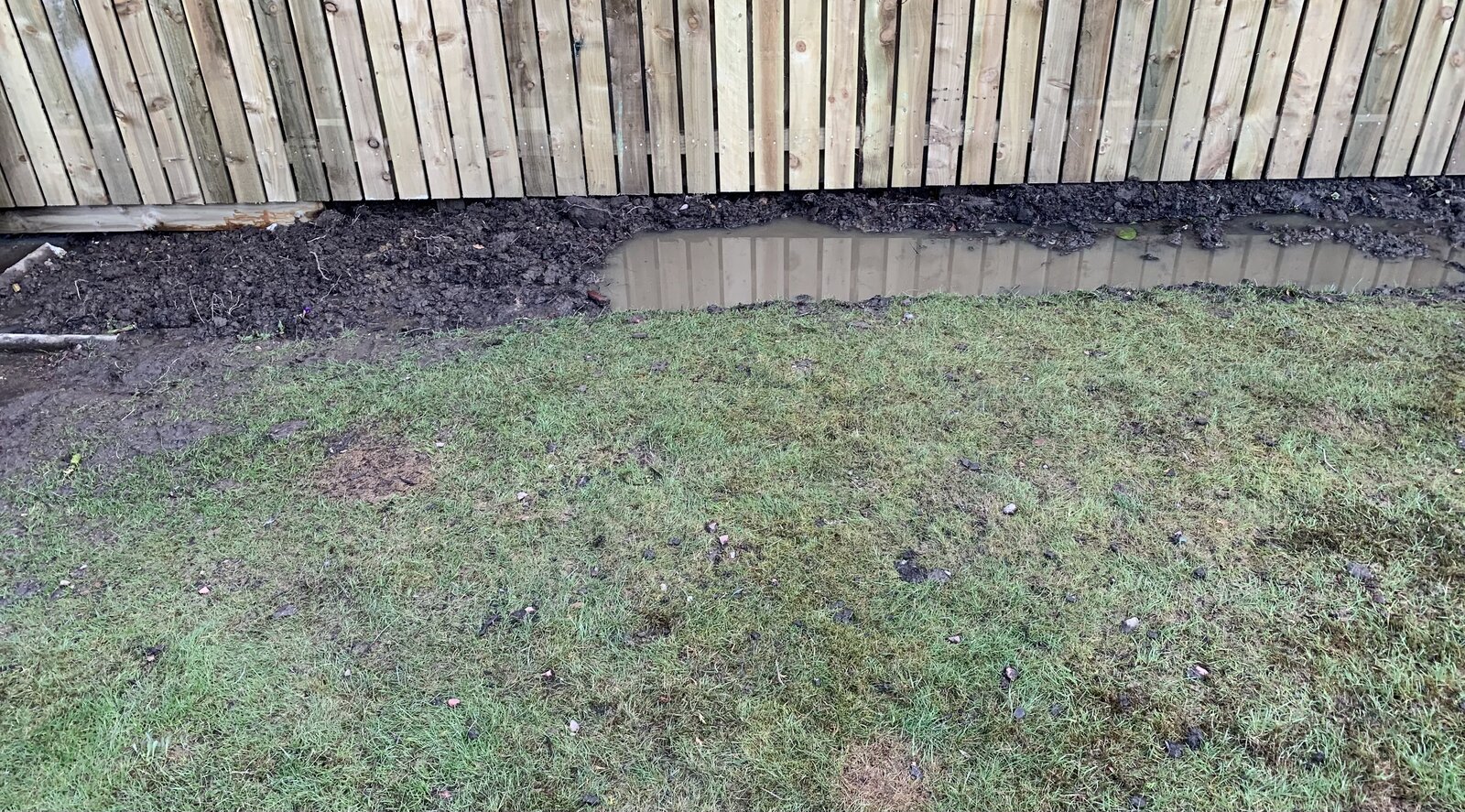 Recently moved in, ground was waterlogged before but couldn't see the extent, I have had 5 single conifers removed and new Fence installed. A digger that took out the confiders has turning over the clay soil.