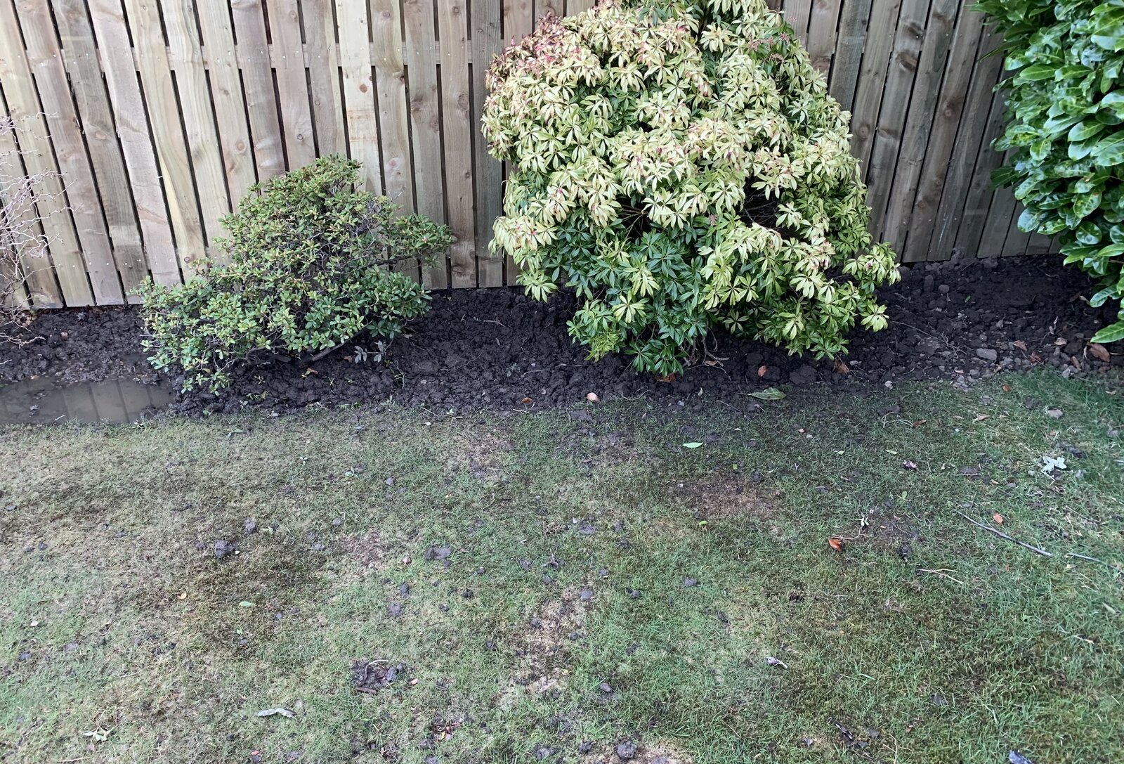As you can see in the Photos the area I have tried to improved has a small pond, the area with the first 2 bushes was not touched other than digging in some plants moved from another area of the garden but was also a waterlogged area before, and the last photo with the bigger bush has no drainage issue and was like that previously.