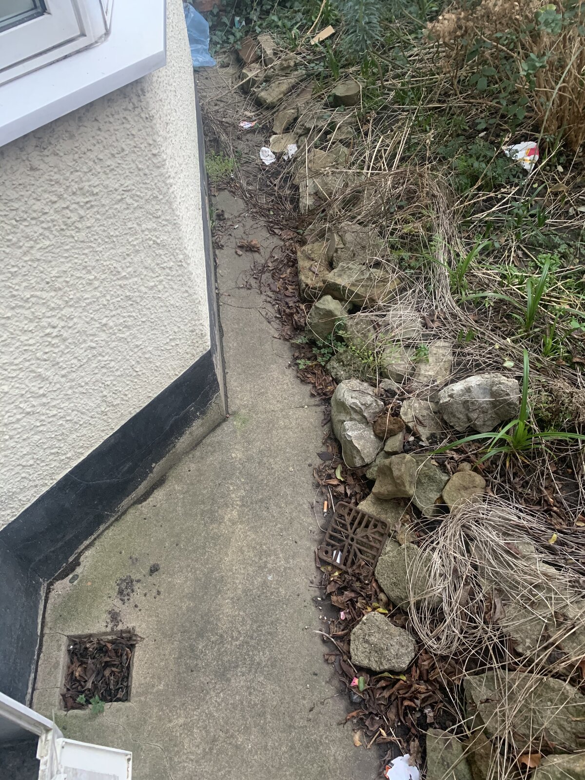 I think this is because they put a rockery and there’s mud from the garden pushing down on it, so it’s making it tilt backwards and away from the house and drain....do you think that’s plausible?