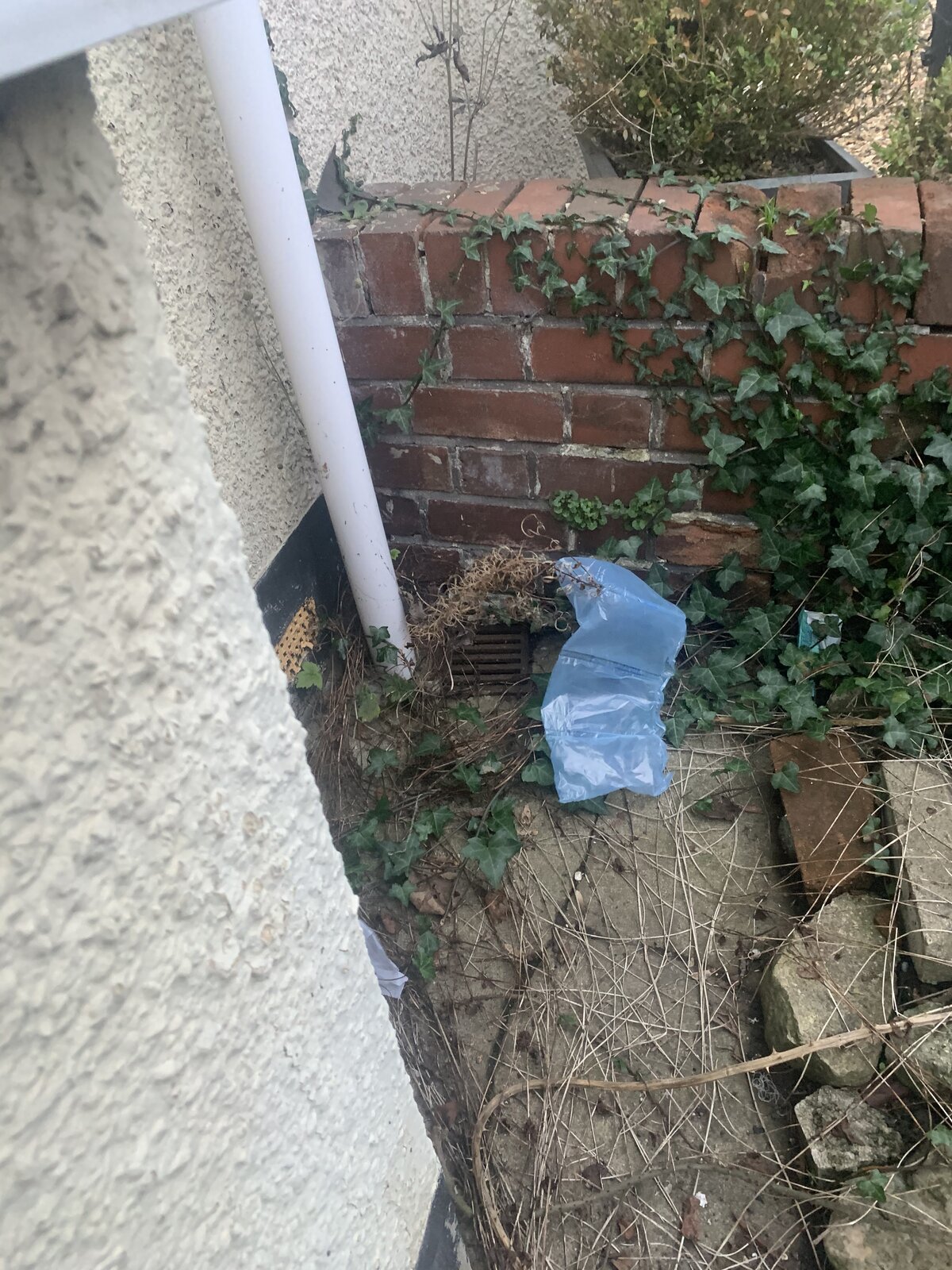 I am going to concrete over the sunken path so water can get away from forming a puddle and go to the drain, however, the other drain (which has no pipe from the guttering and seems to be just for surface water from the garden) on inspection is blocked with all sorts of Earth and debris.