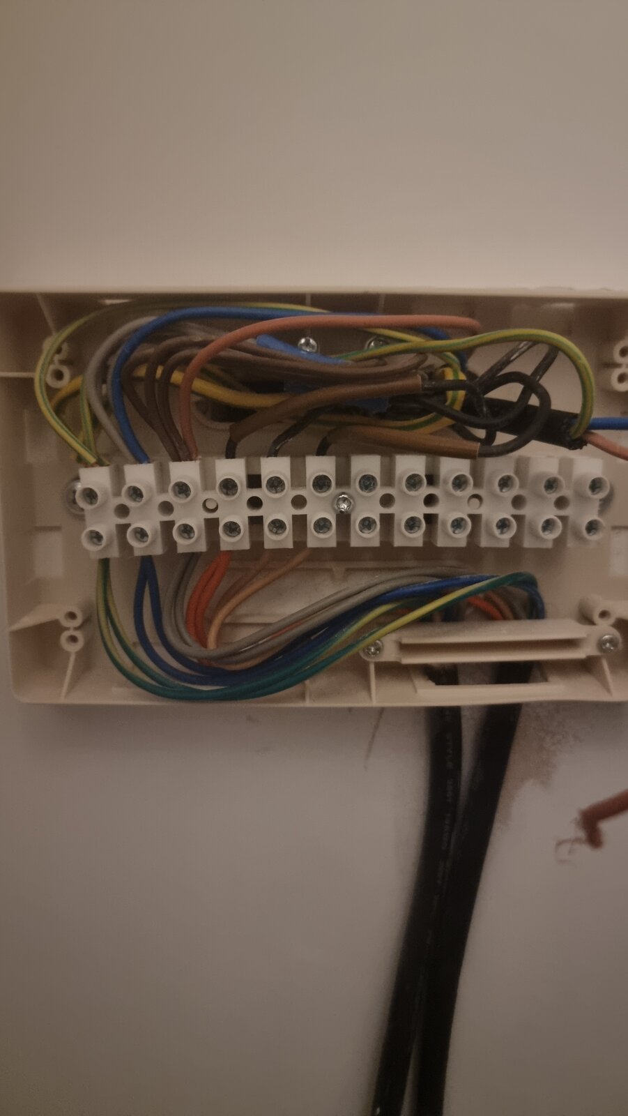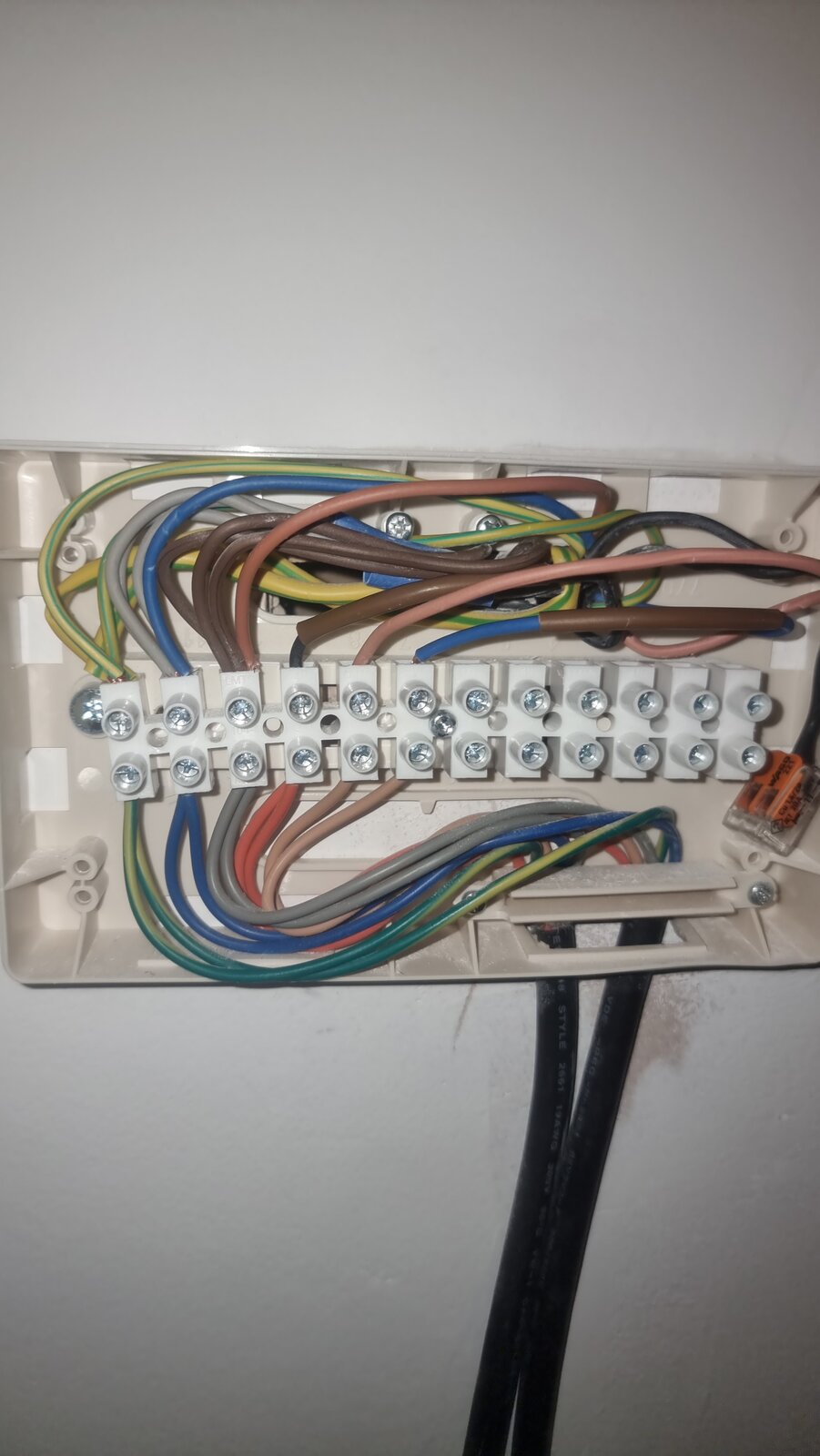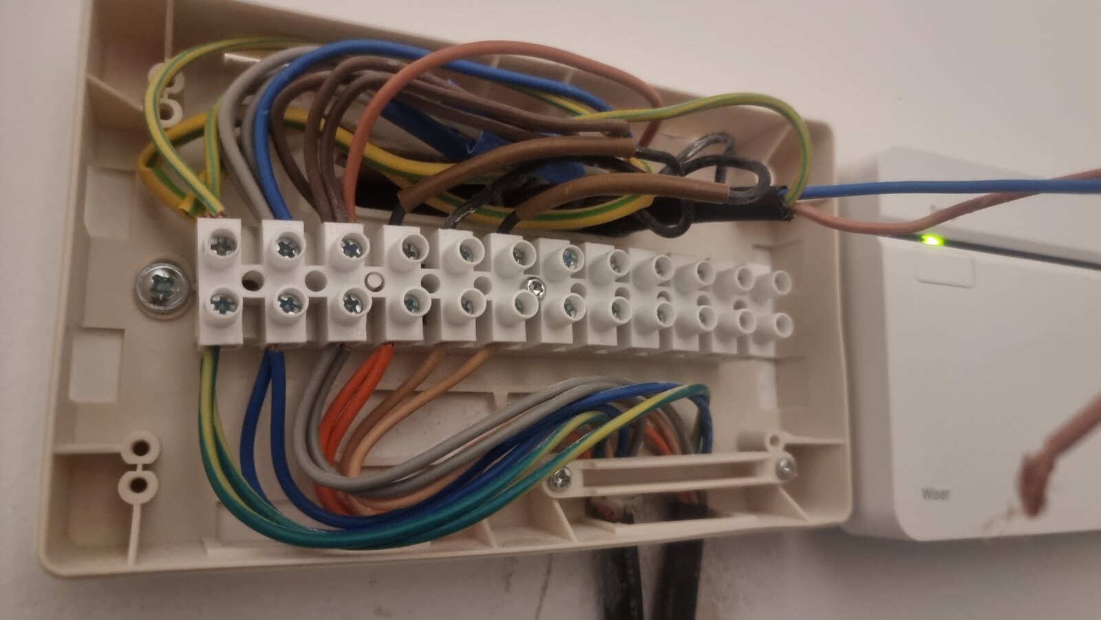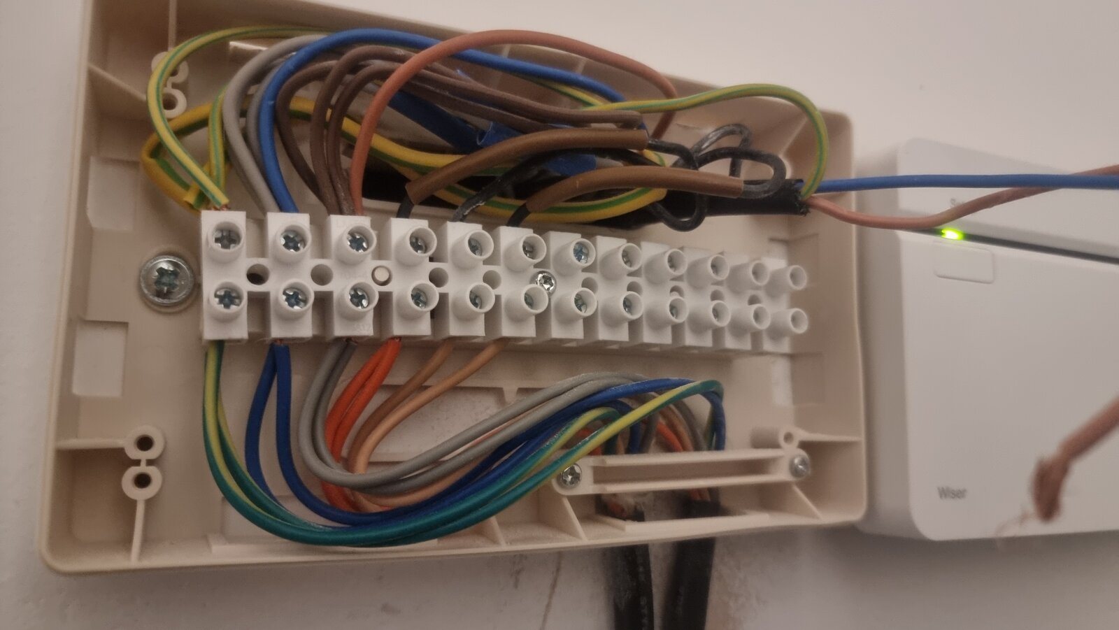 What am I doing wrong? Old stats attached to show how I worked out colours etc. The unconnected black flex is the return from the wiser brown is live from channel 1and blue is live from channel 3