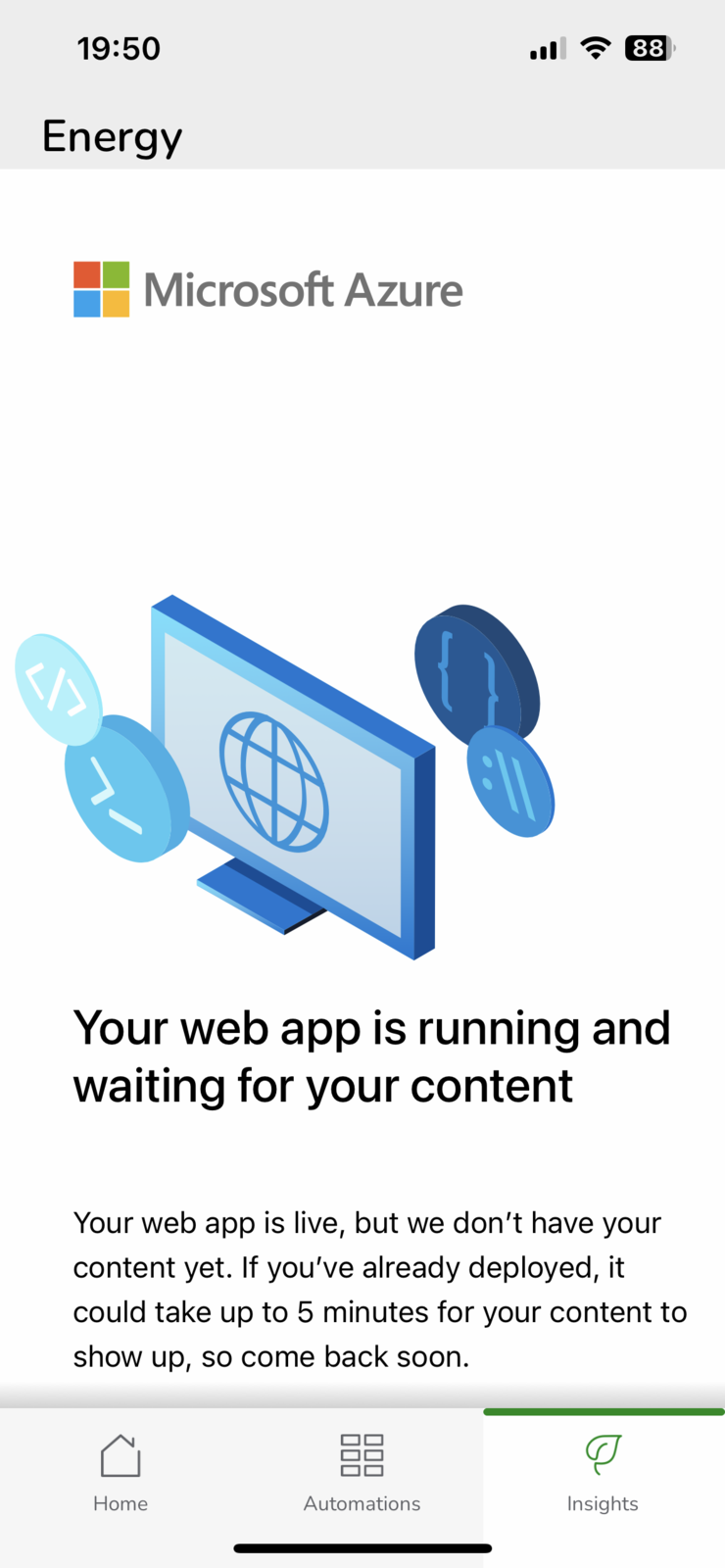 Insights stopped working and I have no weather information. When I click on Insights I get a Microsoft Azure web page. Anyone else getting this?