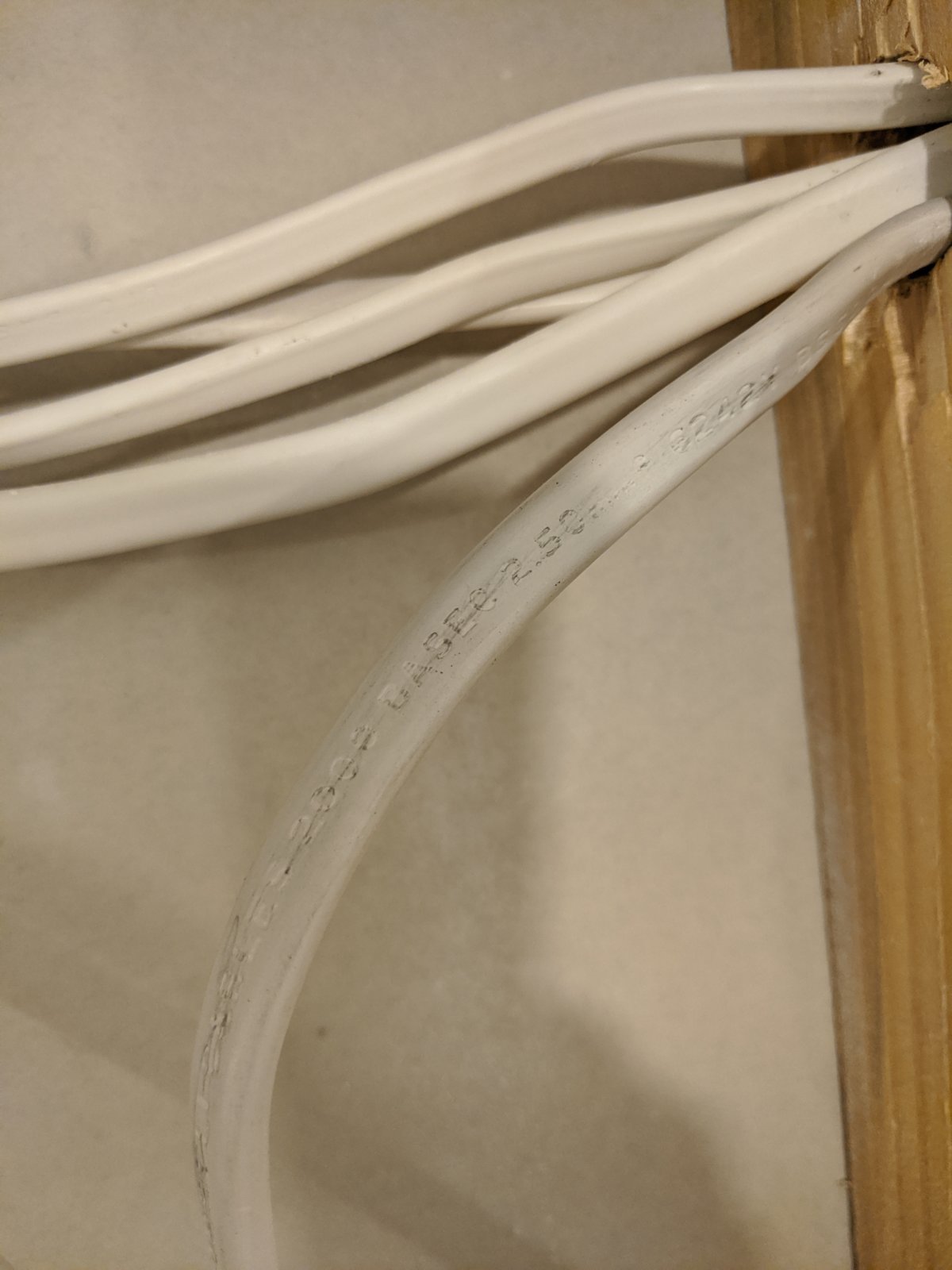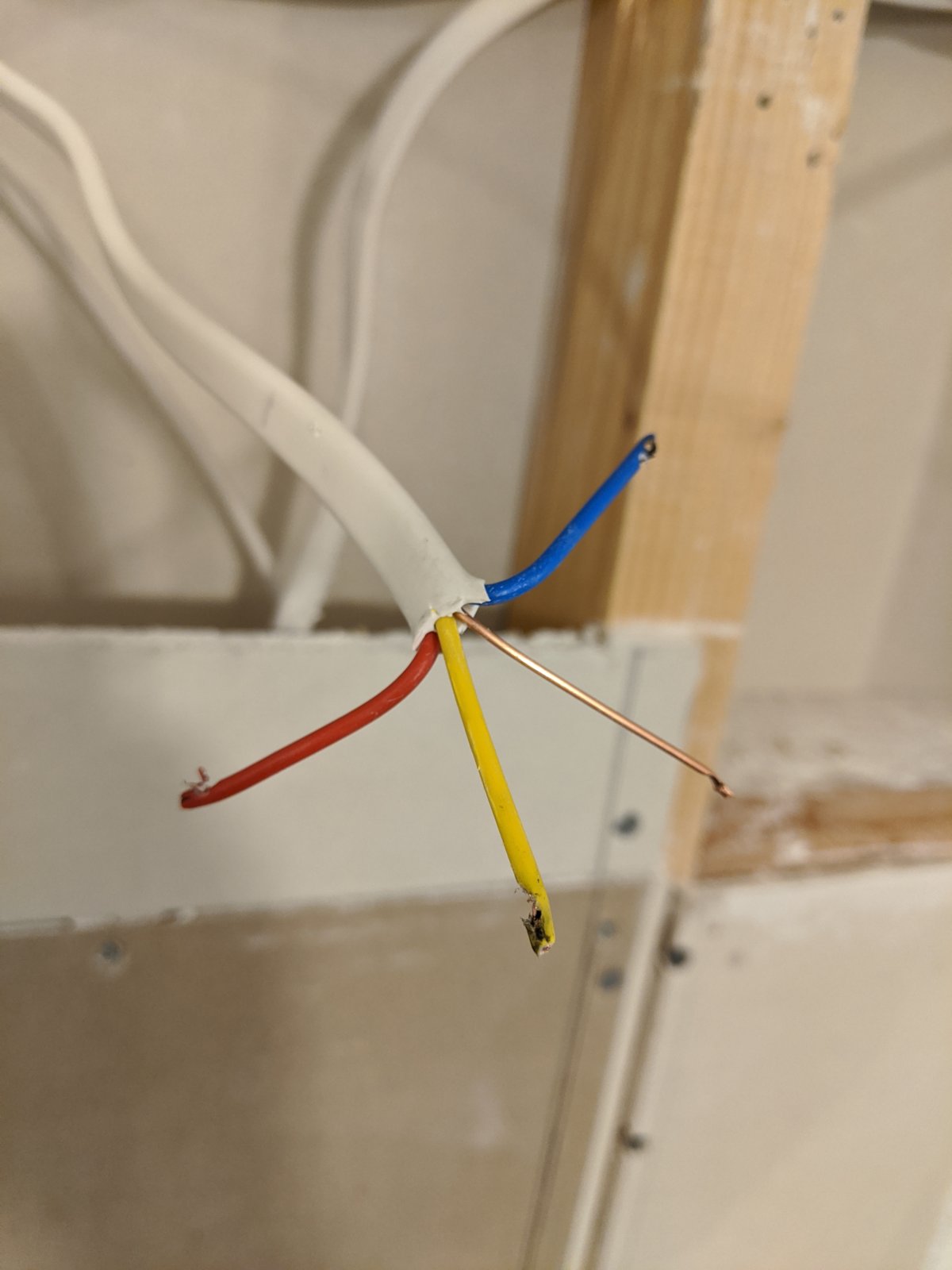 I thought I'd add in a replacement section using 2 junction boxes but on opening the cable up to my surprise it had 4 cores (red, yellow, blue and an earth). The cable has "Pirelli Cables 2000 2.5mm 6242Y BS6004" written on it.