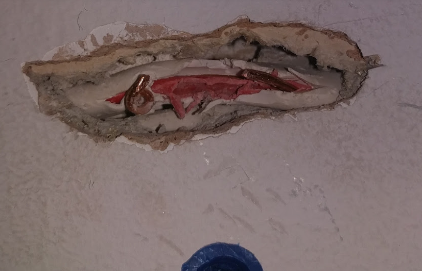 Anyway, chipped away at the plaster to get a better look at it and what I have is the picture below. My first instinct was to find a bit of copper wire somewhere and tape it over the gap with electrical tape, restore power and put the shelf over the top of it and never think of or see it again.