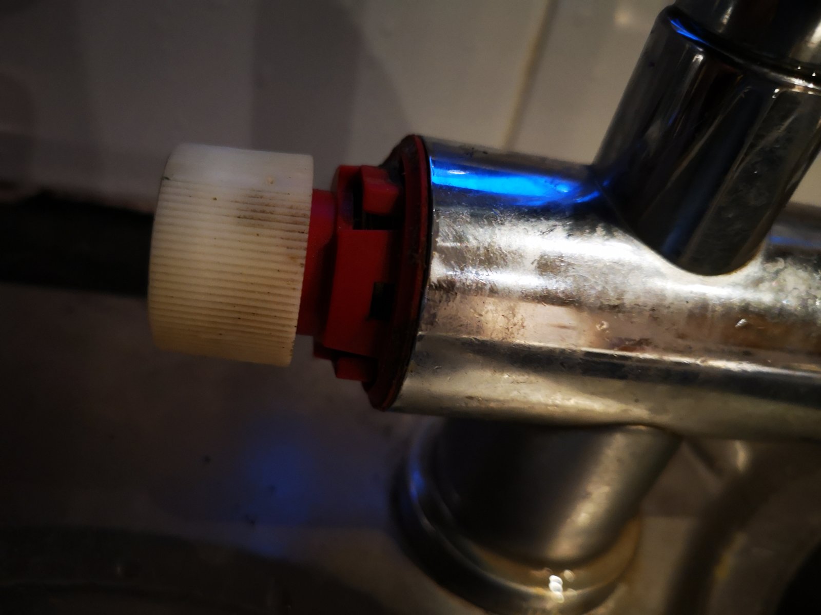 My kitchen tap is dripping. I have removed the covers to look at replacing washers but there are red and blue pieces of plastic getting in the way. I've uploaded photos, any idea how these are removed?