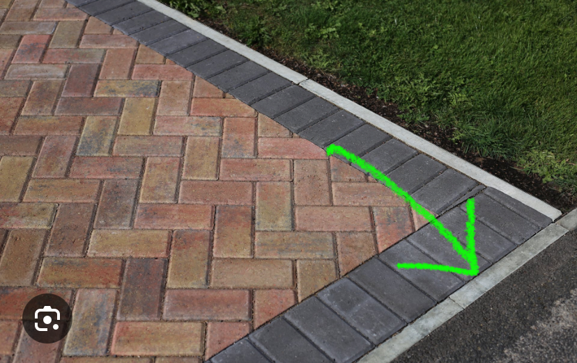 Am I better laying the pavers to follow the dished gradient of the pavement, or pulling a tight string line and doing them level? That’d then cause a bit of a step up on the middle section, which I guess I could do a sharp sand cement fillet on.