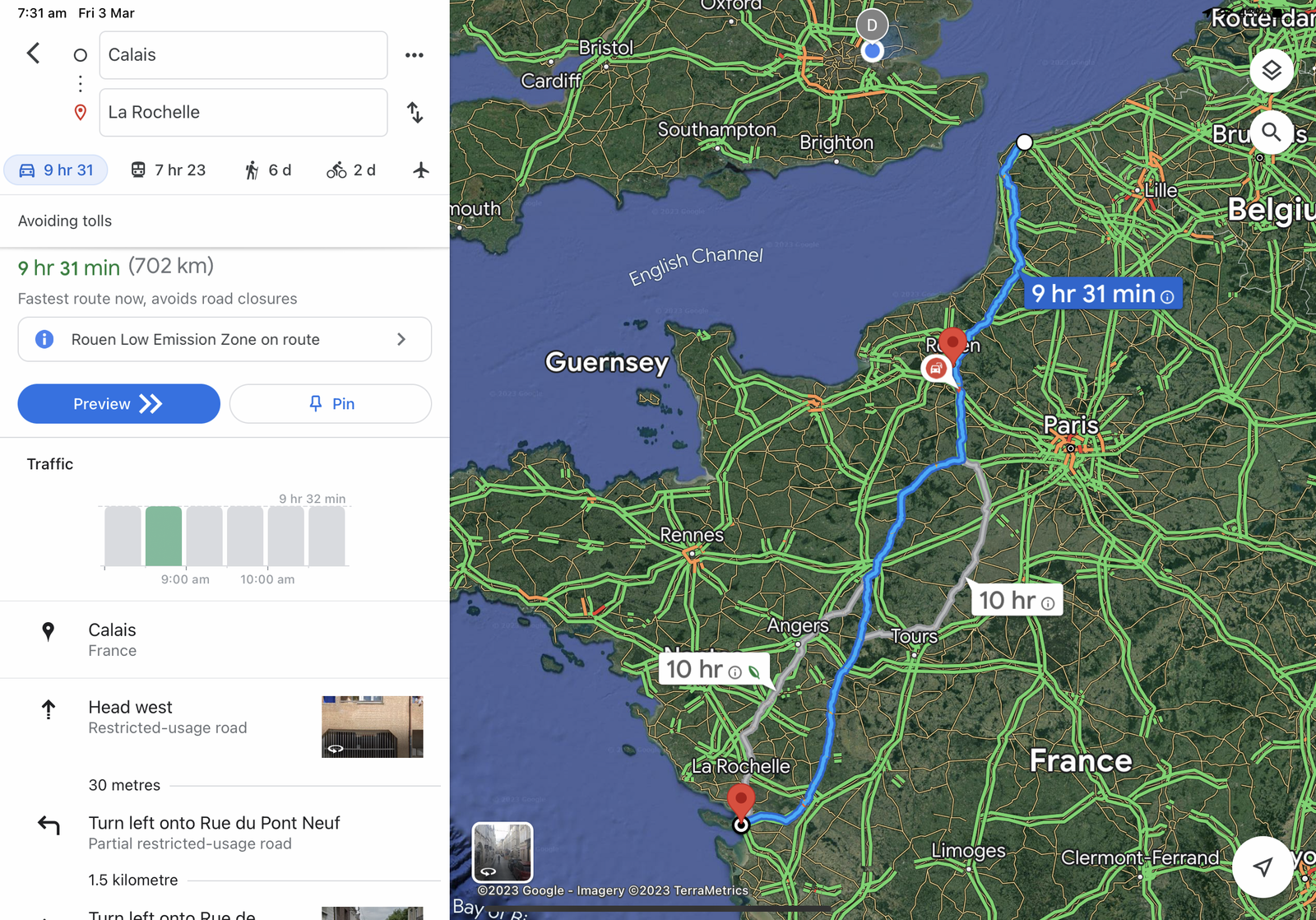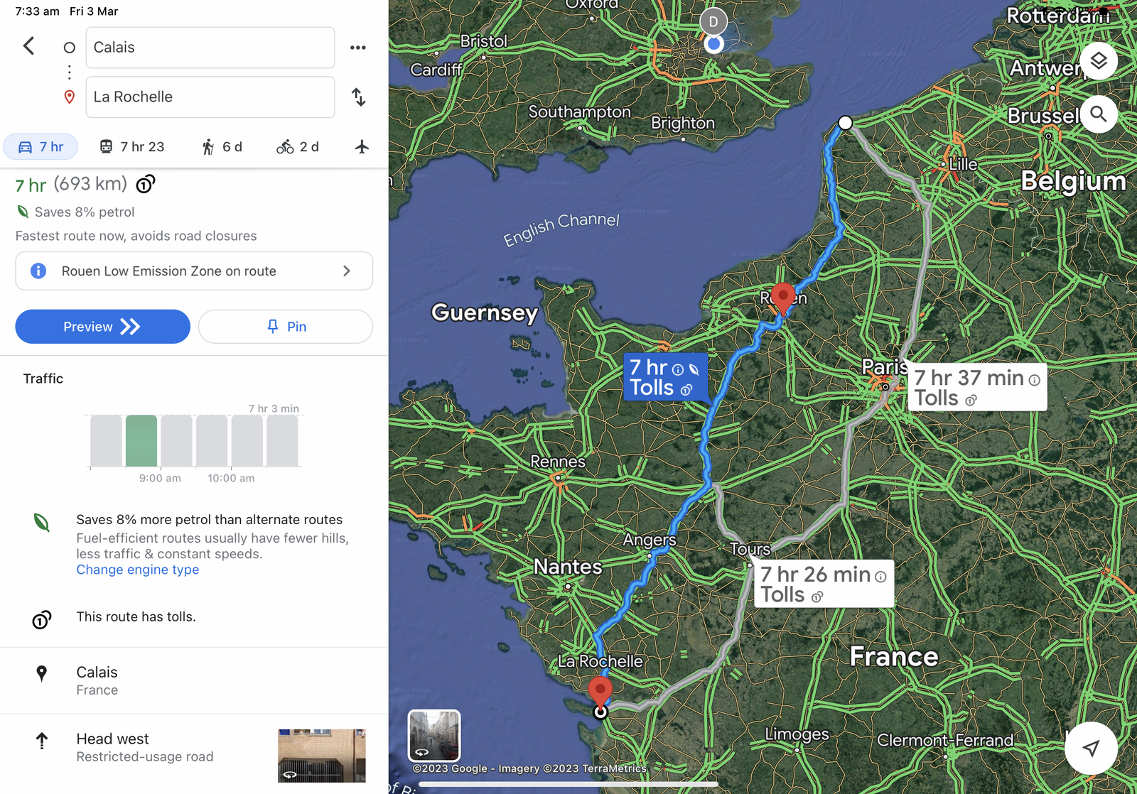 I thoroughly recommend Charente Maritime region where La Rochelle is: it has a micro climate so tends to be warm and Sunny like the South, but without the high prices and long journey.Yeah, all of them can do that. Just takes a bit longer. Normally more picturesque and great if you have the time. Dover to La Rochelle with and without tolls: