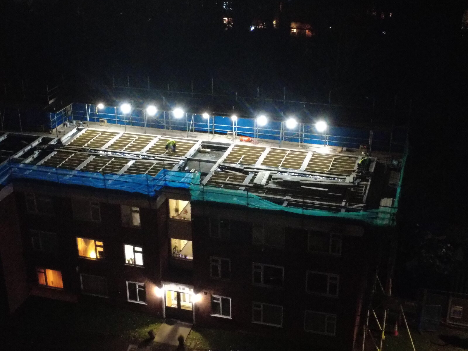 I might not be cut out for this drone flying malarkey! Had a night flight tonight with my new flashing LED. Bloody great, so bright and can see it so easily. I had the green flashing as the white was just too bright. Anyway, I sent it down the street again to have another peek at the progress that the builders are making with adding another floor on a block of flats. Got a good picture: