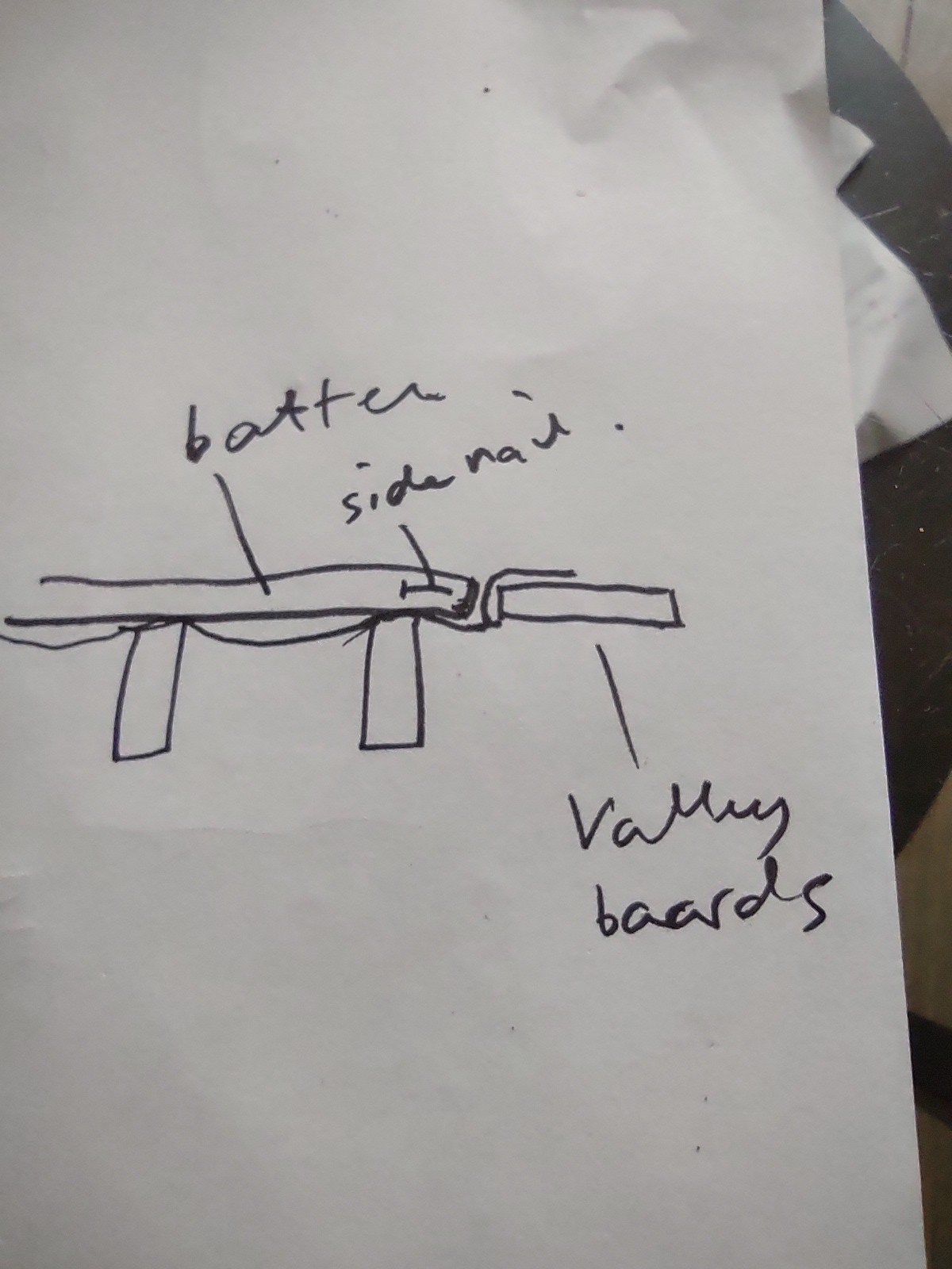 I'm fitting a grp valley and would like to keep the existing valley boards, but they are nailed on top of the rafters rather than set flush - so if the membrane is under the battens it will have to step up onto the board, is this ok? I think it will create a trough down the side of the board, also I would like to side nail the battens to the edge of the valley board but this will pierce the membrane - any suggestions appreciated, nice and simple- this is my second valley ever!