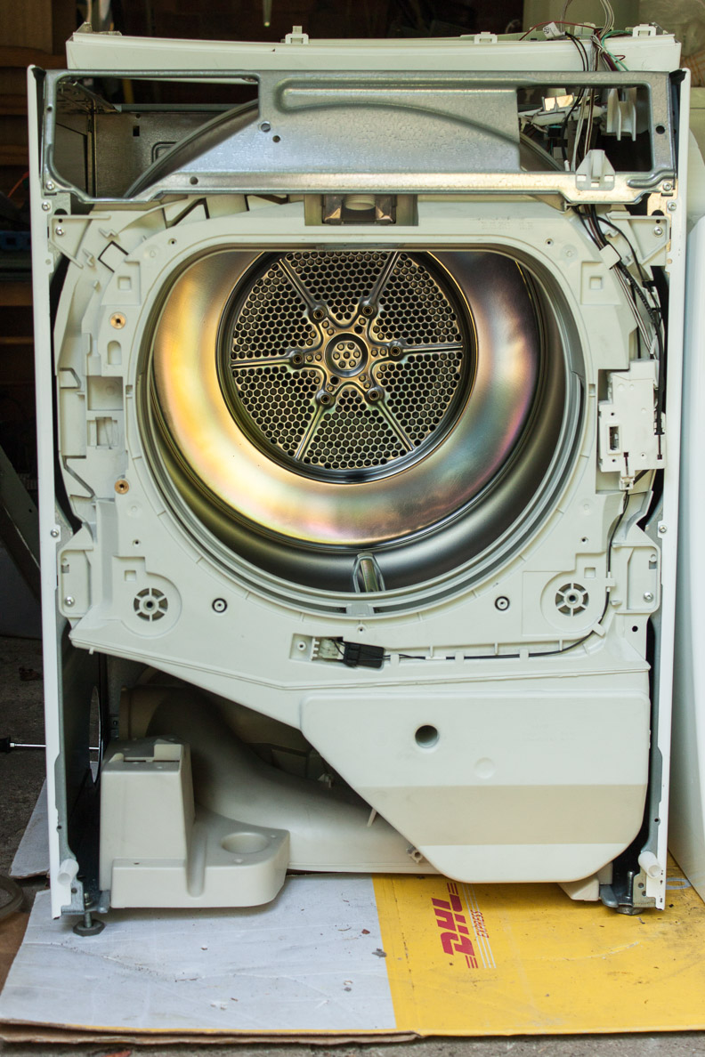 Take note of the armature that connects to the drum. This is Miele's moisture detection system. It apparently passes a small current through the drum which is passed through those tracks and through the armature to a sensor.