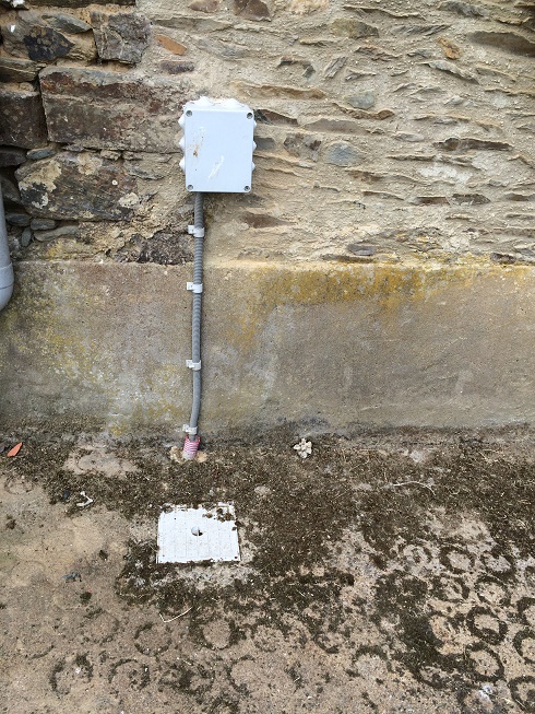 From this a inslulated 8mm cable goes to earth bloc and 8mm continues to rod.