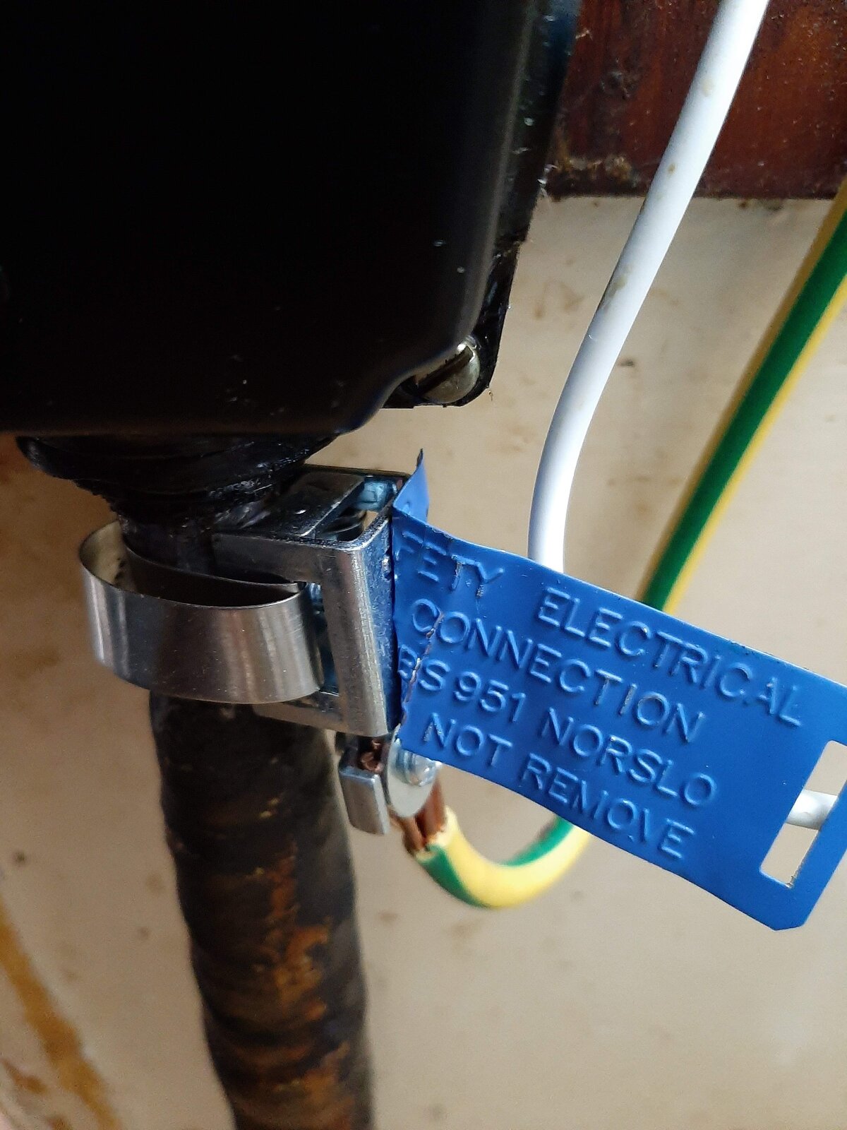 Obviously now you cant fit a sleeve as the wires terminated, many Dno supply cables are not swa or modern swa, so your clamp may be onto something solid anyway. sometimes even lead.