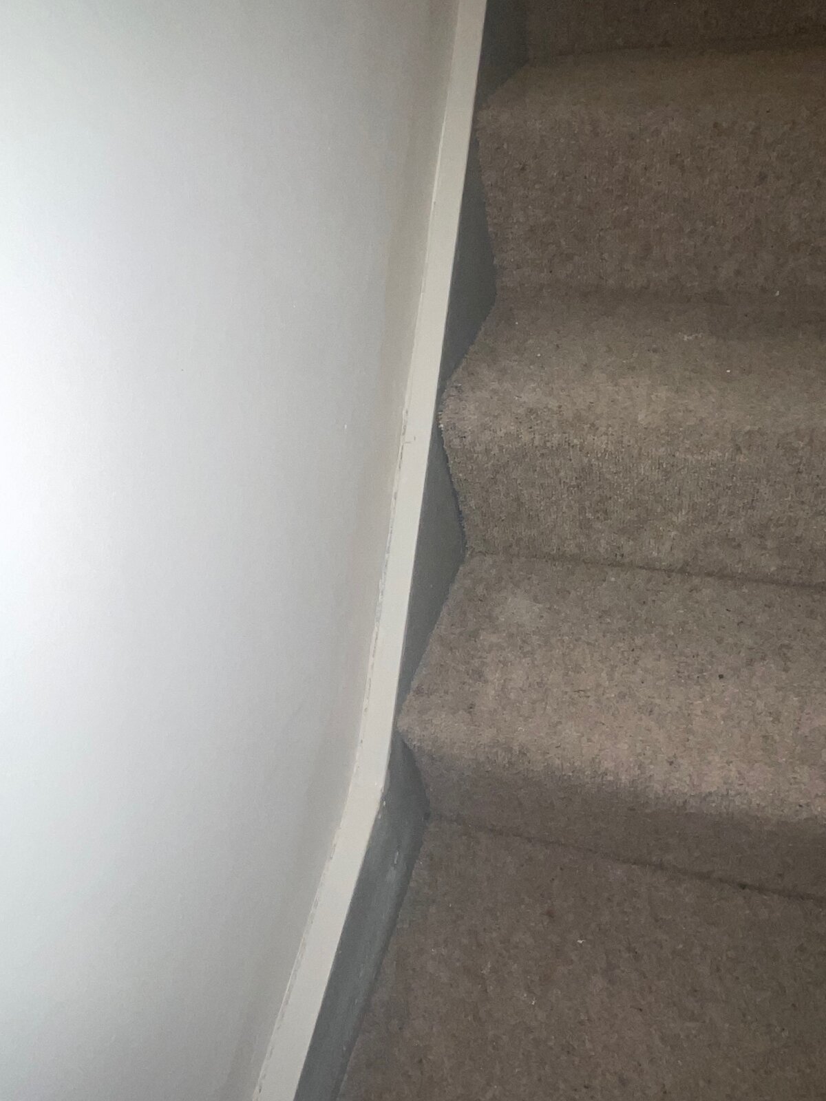 However , there is a section where the stringer comes out from the wall by about 3 or 4mm. At the top and bottom of that section its spot on. Would it be total madness to add Toupret to the face of the wall (faded up over a foot or so maybe) so it flares to meet the stringer edge?. I don't want to have to use a trim or use a wedge of filler/caulk if possible.