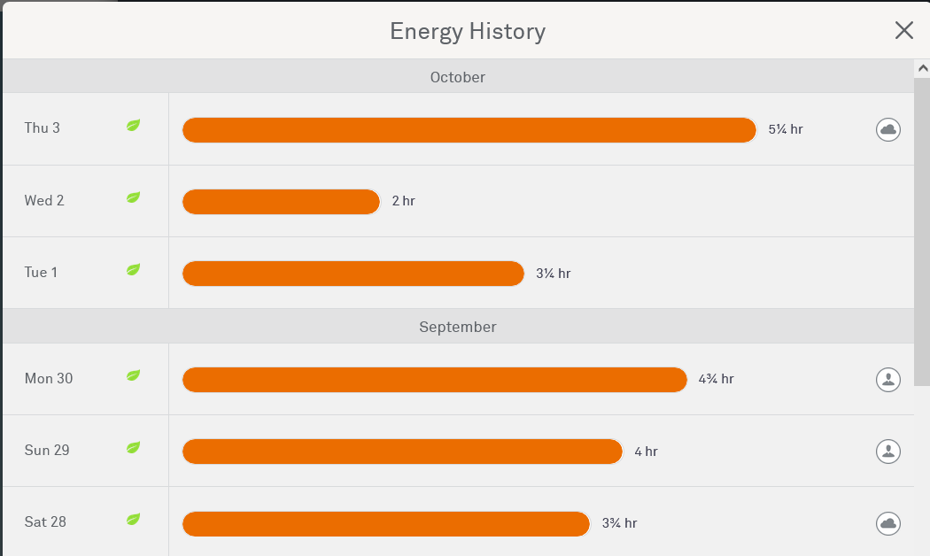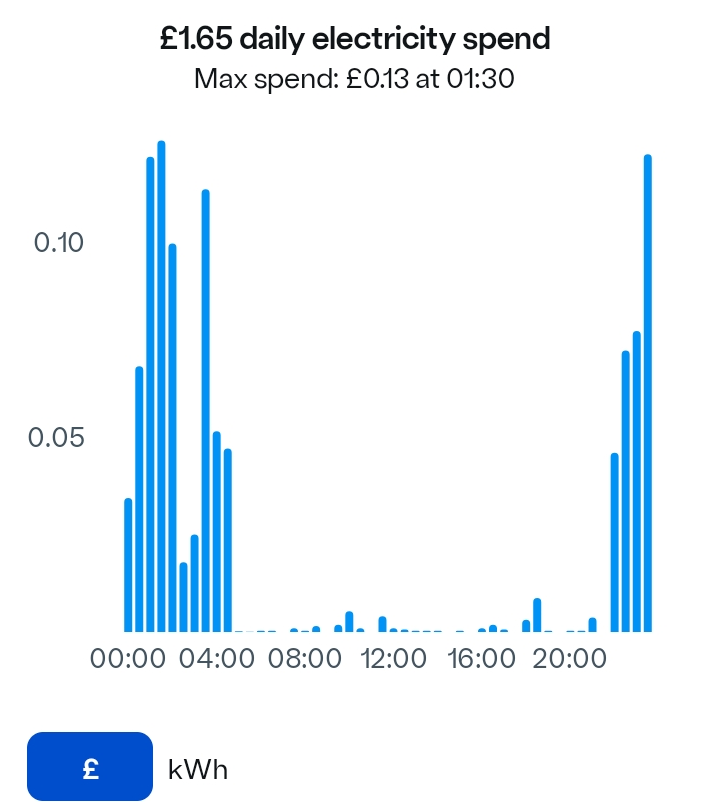 If you use a constant draw on power, then duel tariff can still work out cheaper, the problem is if you use more power during peak than off peak, OK for me, my solar power software gives me a good graph of power used, View attachment 357731 and power taken from the grid View attachment 357732 so I know the split tariff works for me. Your first job is to work out which tariff suits you, as by changing tariff to a single rate day and night, you may need to do nothing. If I did not have solar and a battery, split tariff would not suit me. The smart meter app View attachment 357740 may also show when you use power, that is your start point.