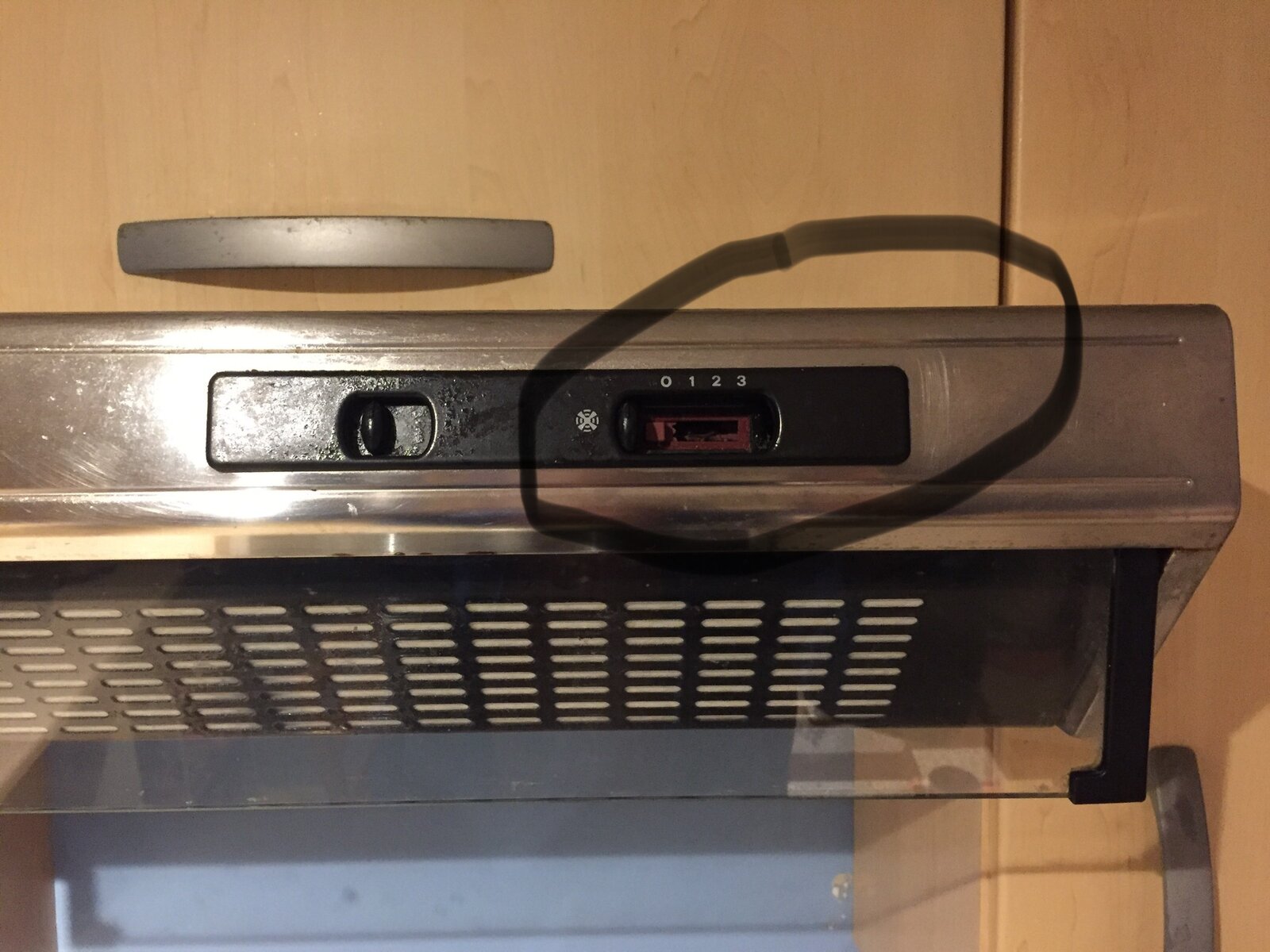 When I turn off my electric cooker hood in the kitchen, sometimes I can see a small spark at the switch (marked in the photo). The original switch cover is missing so the red switch is exposed. Should I be concerned and how I can rectify it?