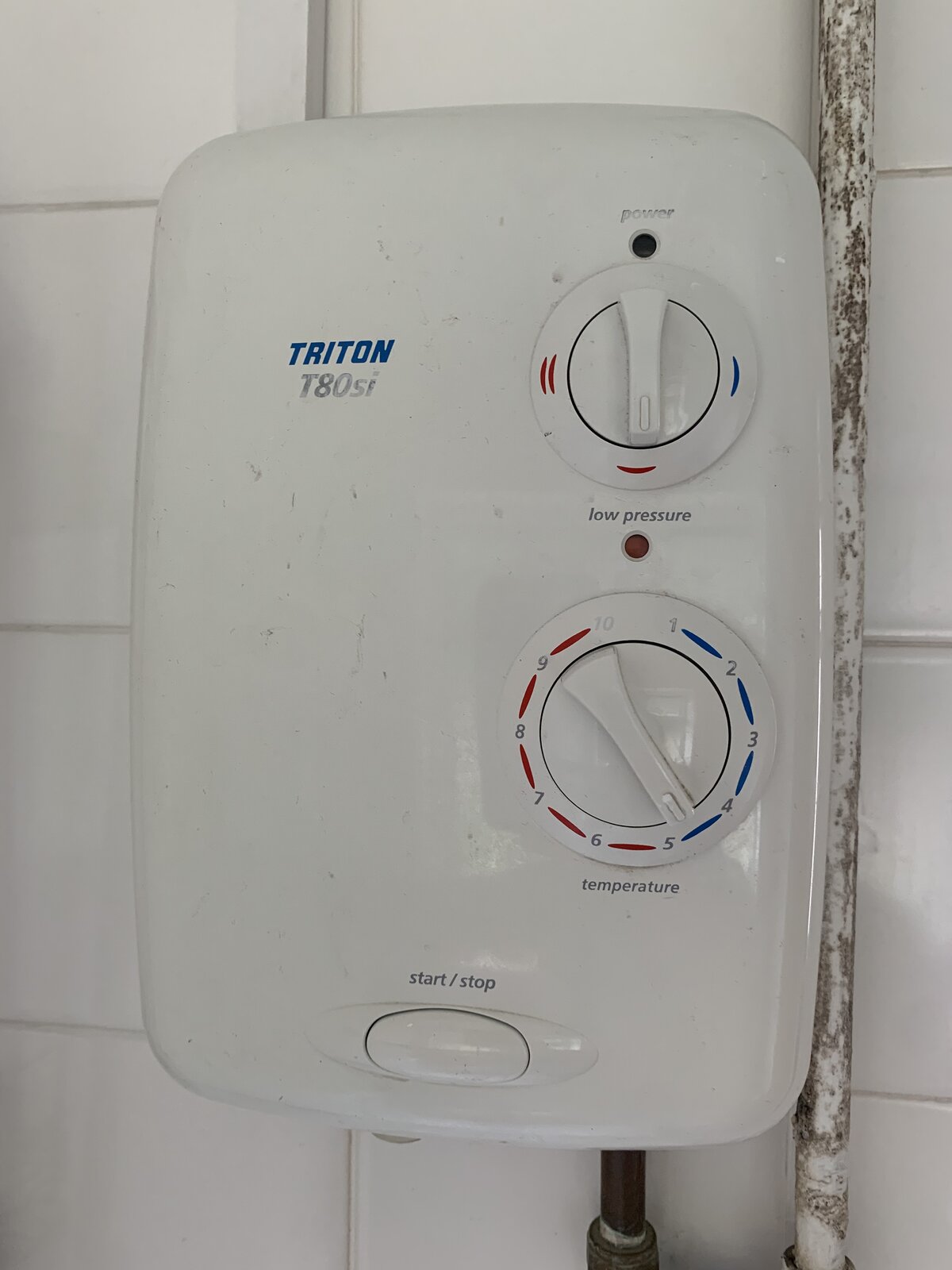 My shower has lost power and pressure in the main part but the part on my ceiling has the light on with power.