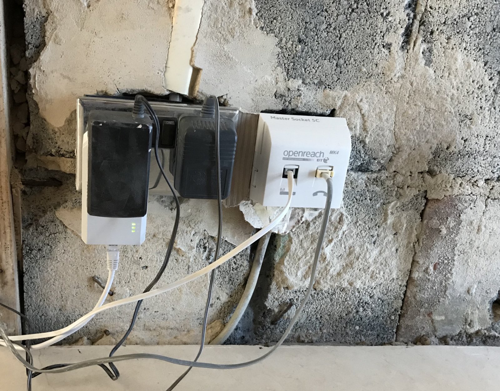 I have a downstairs WC that had an electric shower and hand basin in it. The shower is being removed. What are the regulations to have a BT phone socket and power in there to power the router etc?