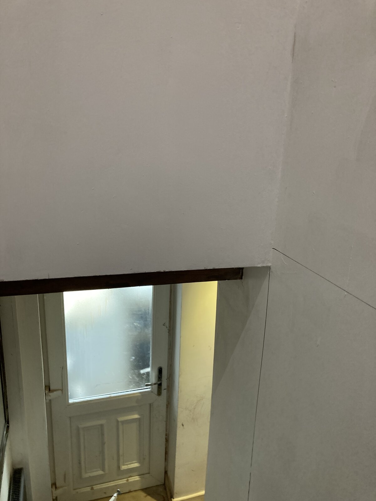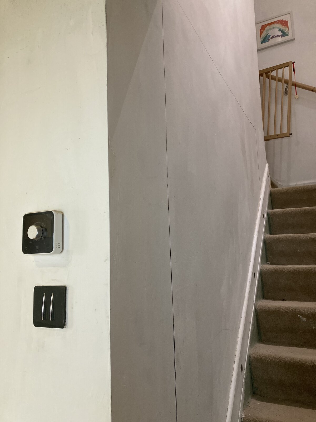 Also on the wall there is a hood running across at the beginning of the stairs which is the cupboard in the bedroom
