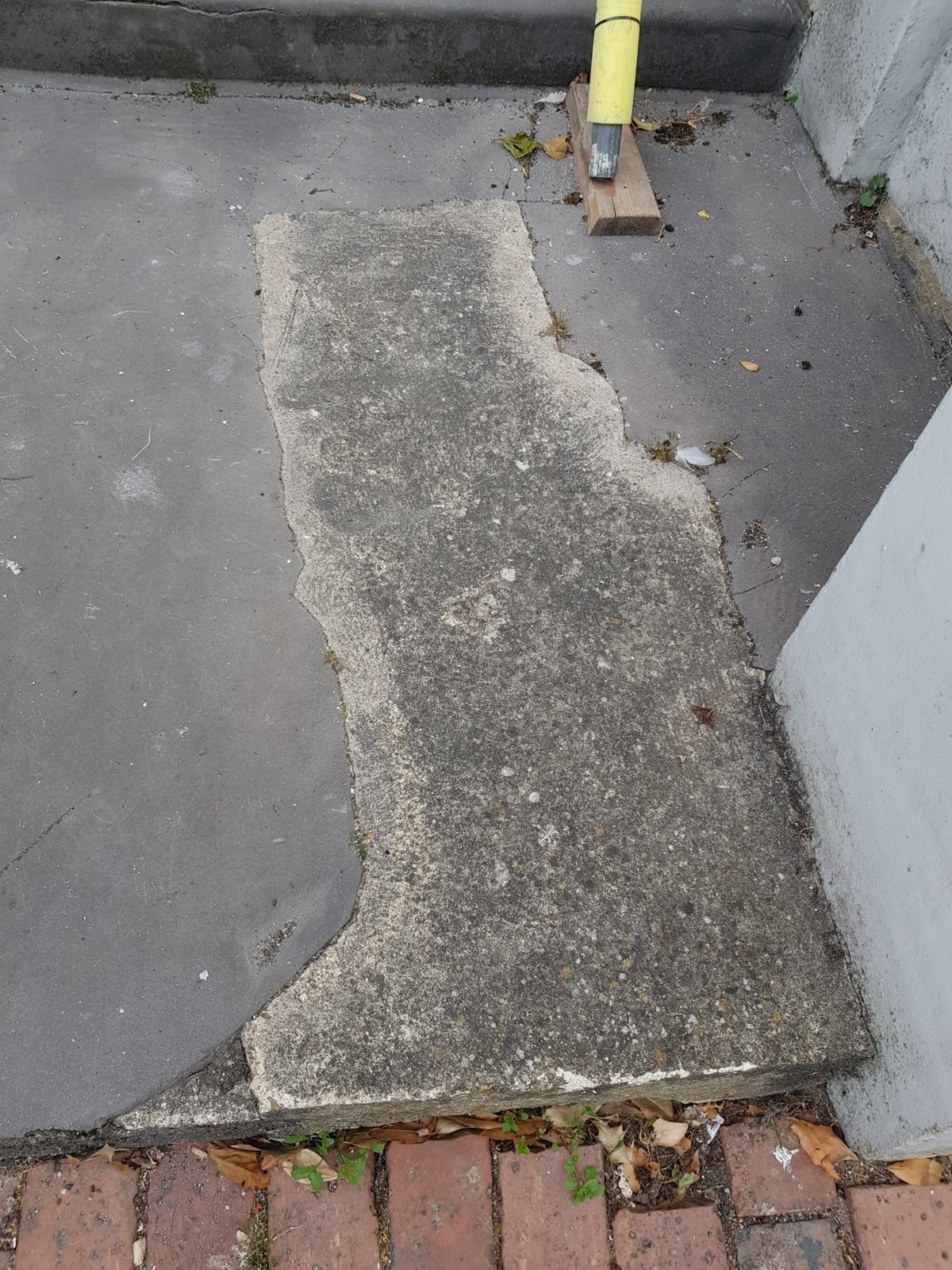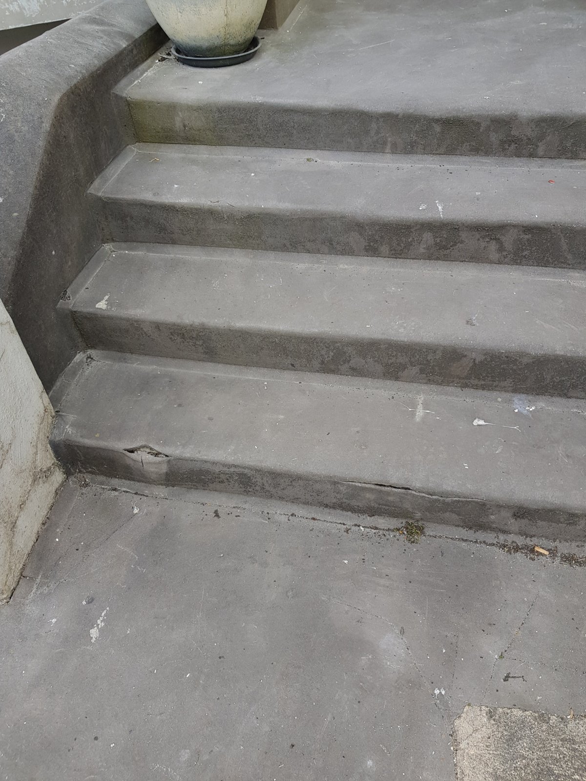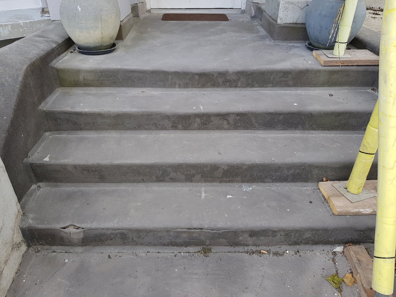 As you can see on pictures, steps have been repaired with a patch of concrete I believe.