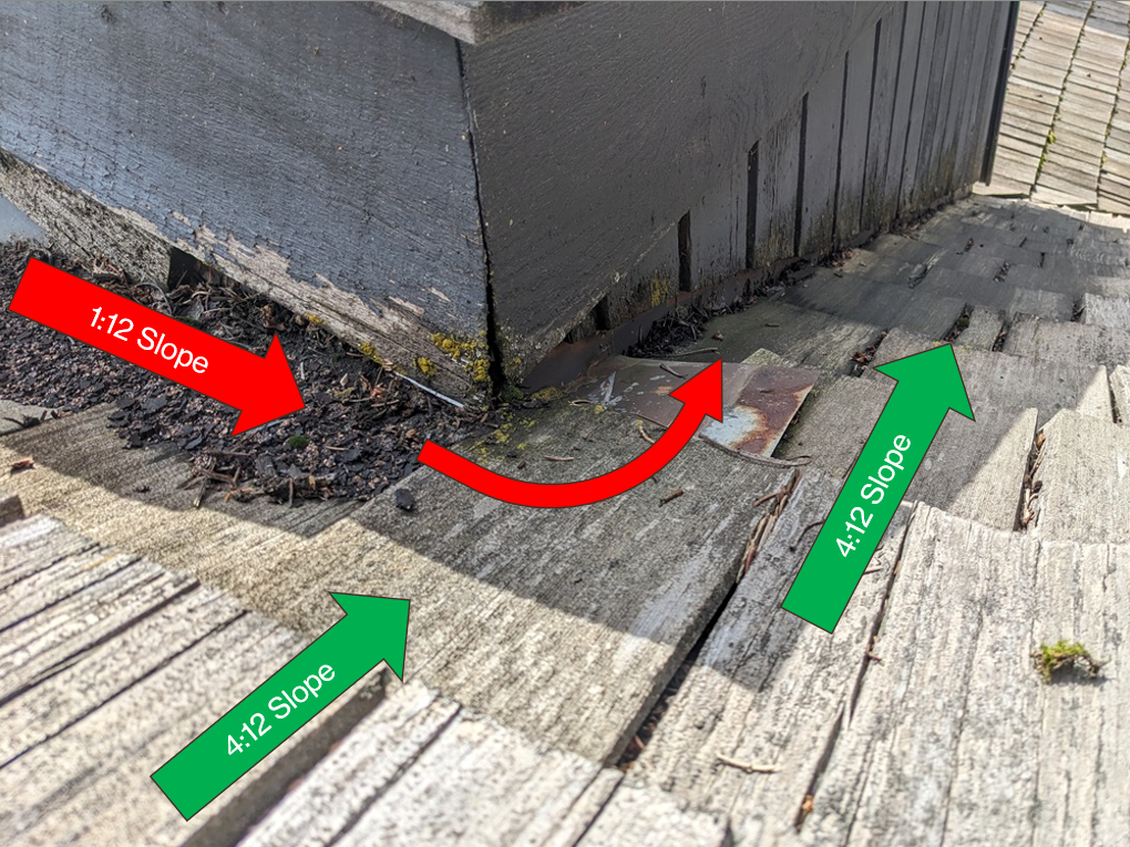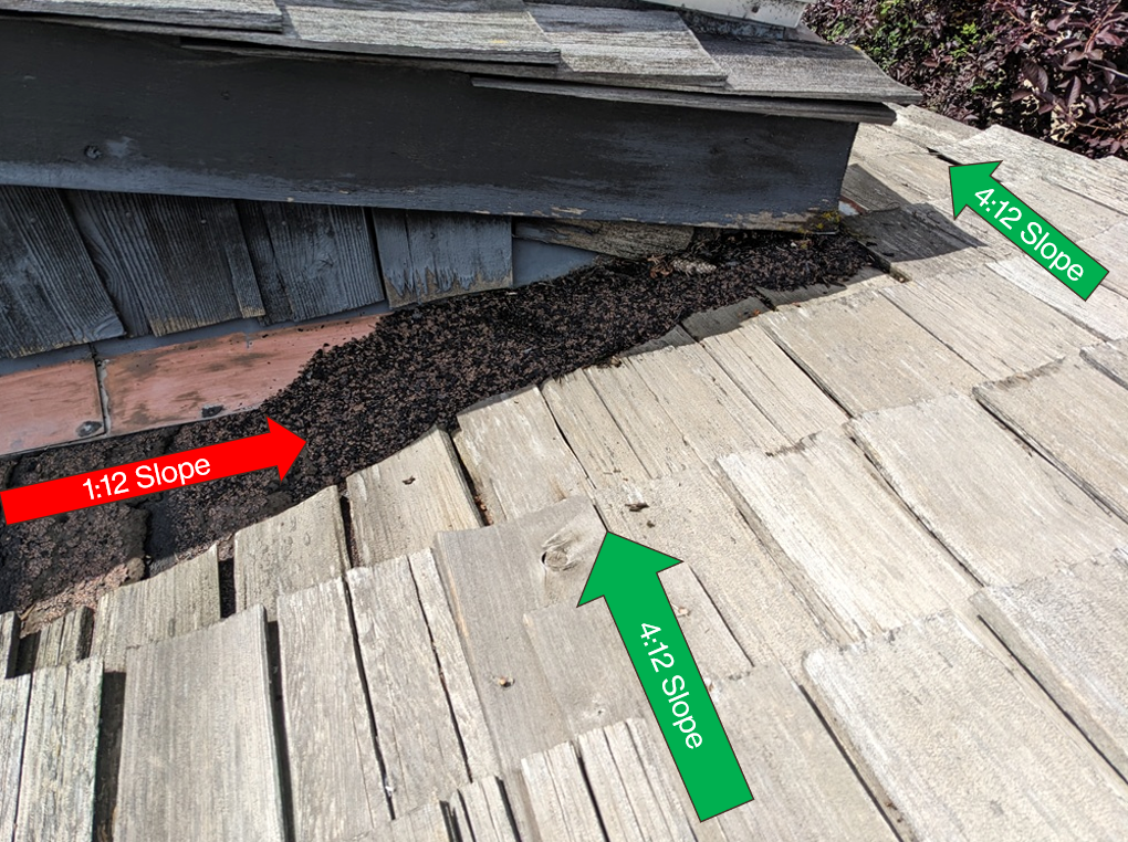The biggest issue though is the corner of the vertical wall where everything kinda converges from the low pitch section and the higher pitch cedar shakes.