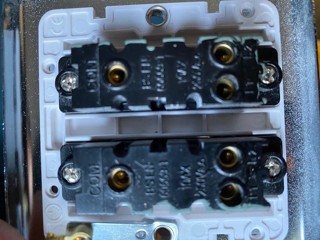 That leaves one black ,put that in L1 on the the first gang ( the switch with the 3 browns in COM.