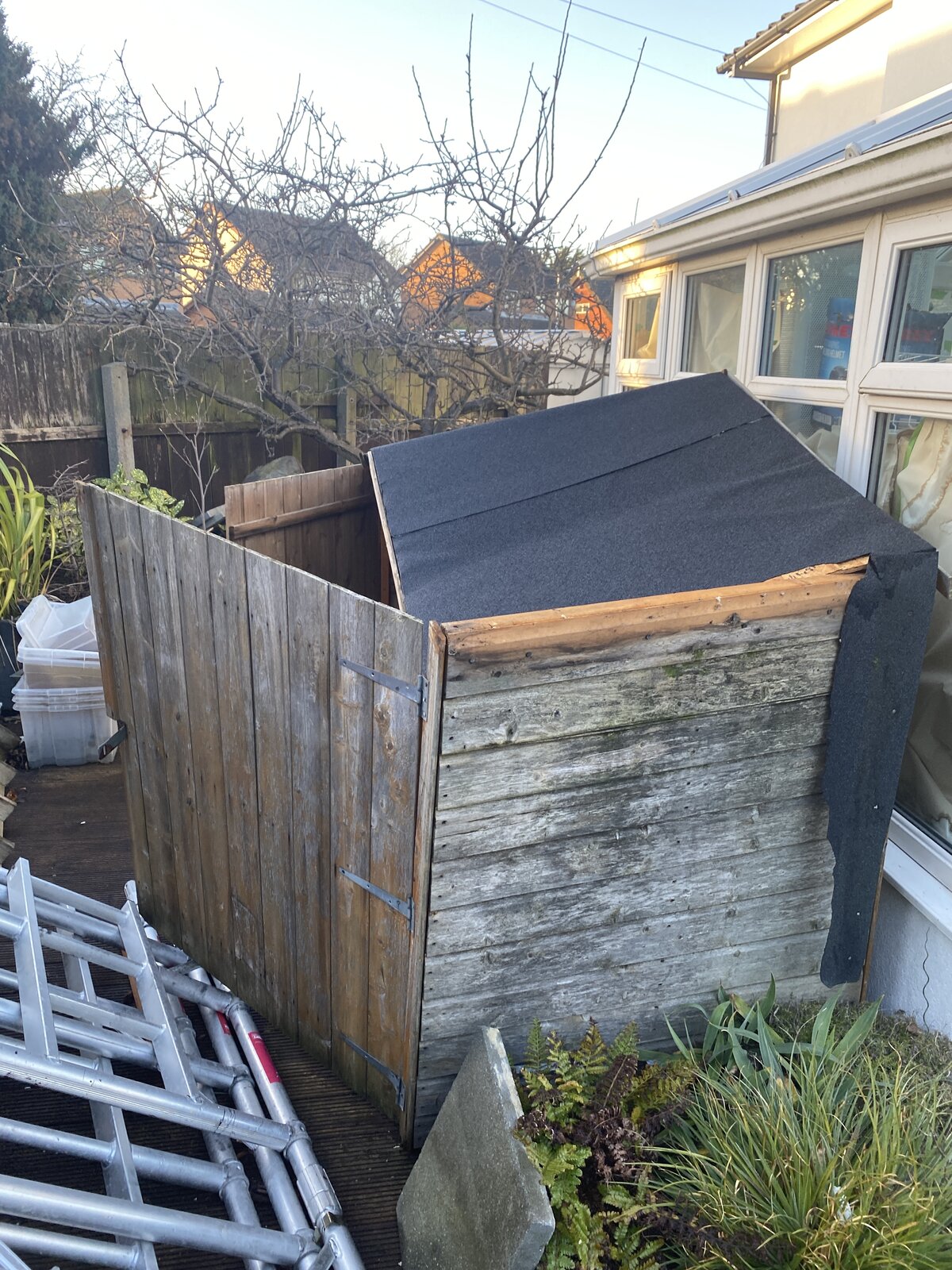 Although the felt was fairly new, the shed was on its last legs anyway…I think this gives me an excuse to build my man cave now :D