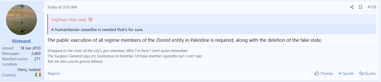 Criticism of a country's policies is not spreading hatred.No, but it provides an ideal platform for that type of hatred as opposed to, say, a thread about combi boilers.