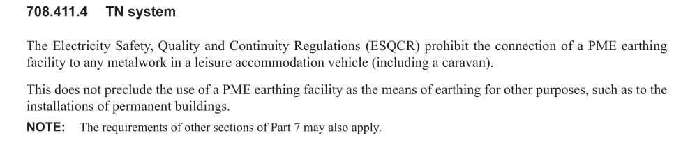 I haven't looked in any books (Then or now) but my understanding is camp sites should be TT and 2P OCPD as we originally fitted. My bosses reaction seems to be the same, he is usually very clued up and has sat on IEE committees in the past.