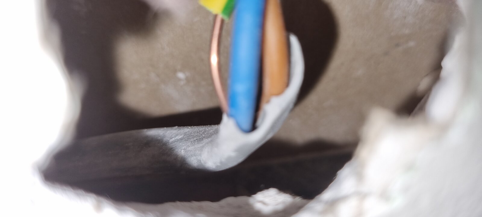 I'm concerned at seeing the exposed wire here. Is this safe to patch and plaster over? This is in our bathroom, so currently very worried about showering etc.