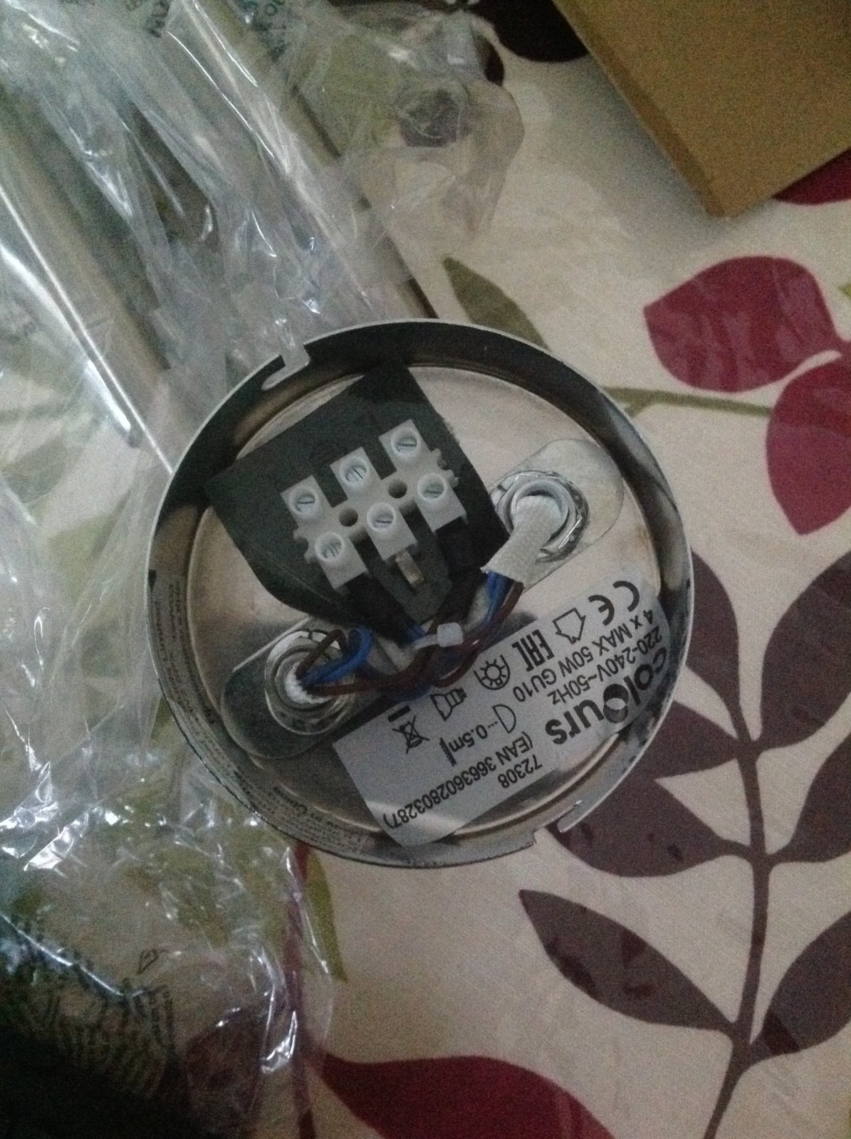 Pictures of existing wiring and new light attached.