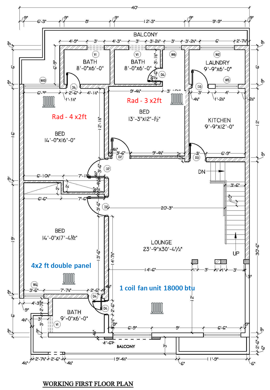 Ground Floor= a 252 sqft room; 320 sqft. Lounge with 600x1400mm Type 11 radiators installed in each room. Both rooms maintain temperature very well.