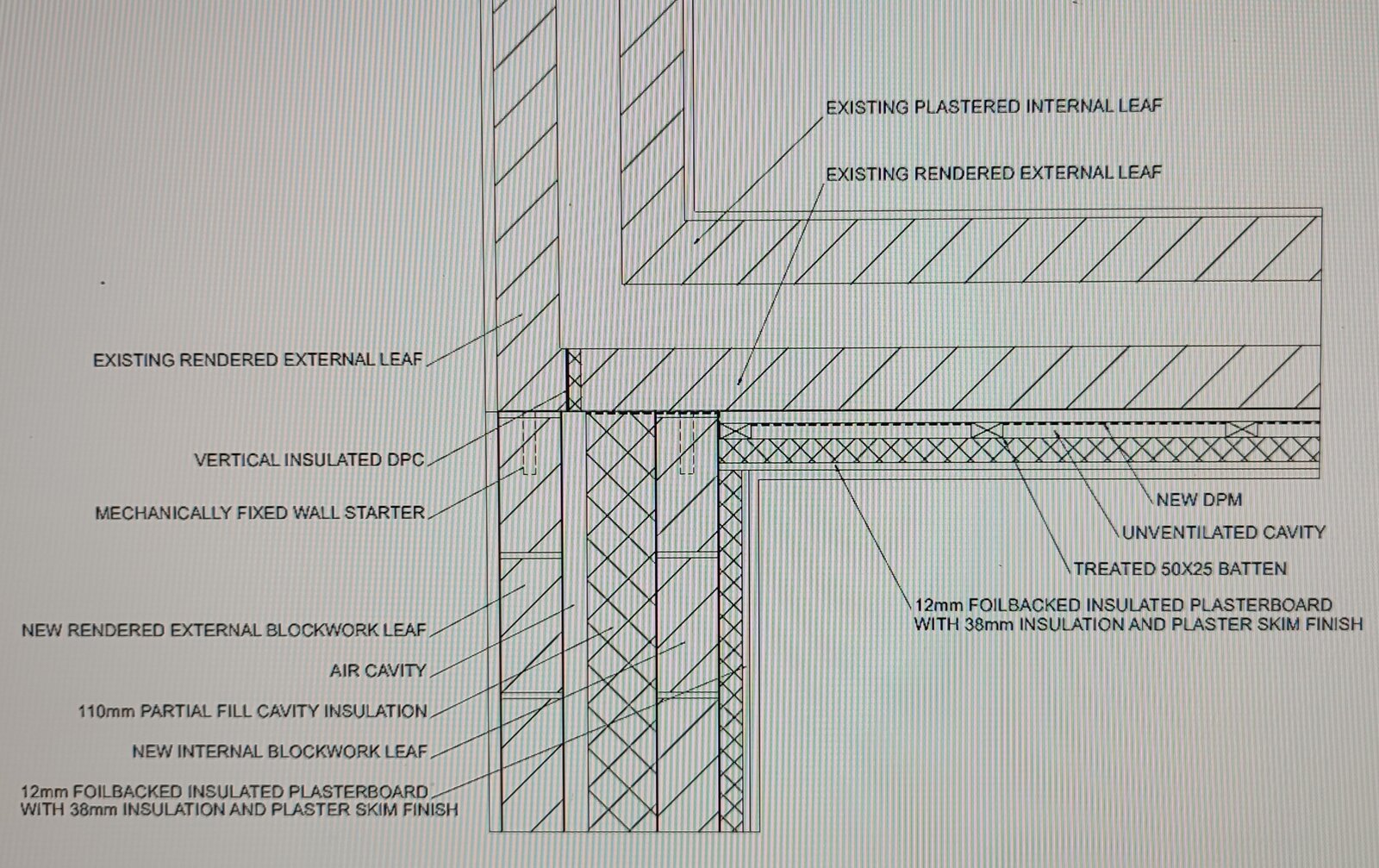 Hi we are building a small extension at the rear of our house and I'm just wondering if I'm missing anything. It's blockwork cavity wall old and new. The existing external facade will become an internal face which we will dry line. Is there anything else that needs to be considered?