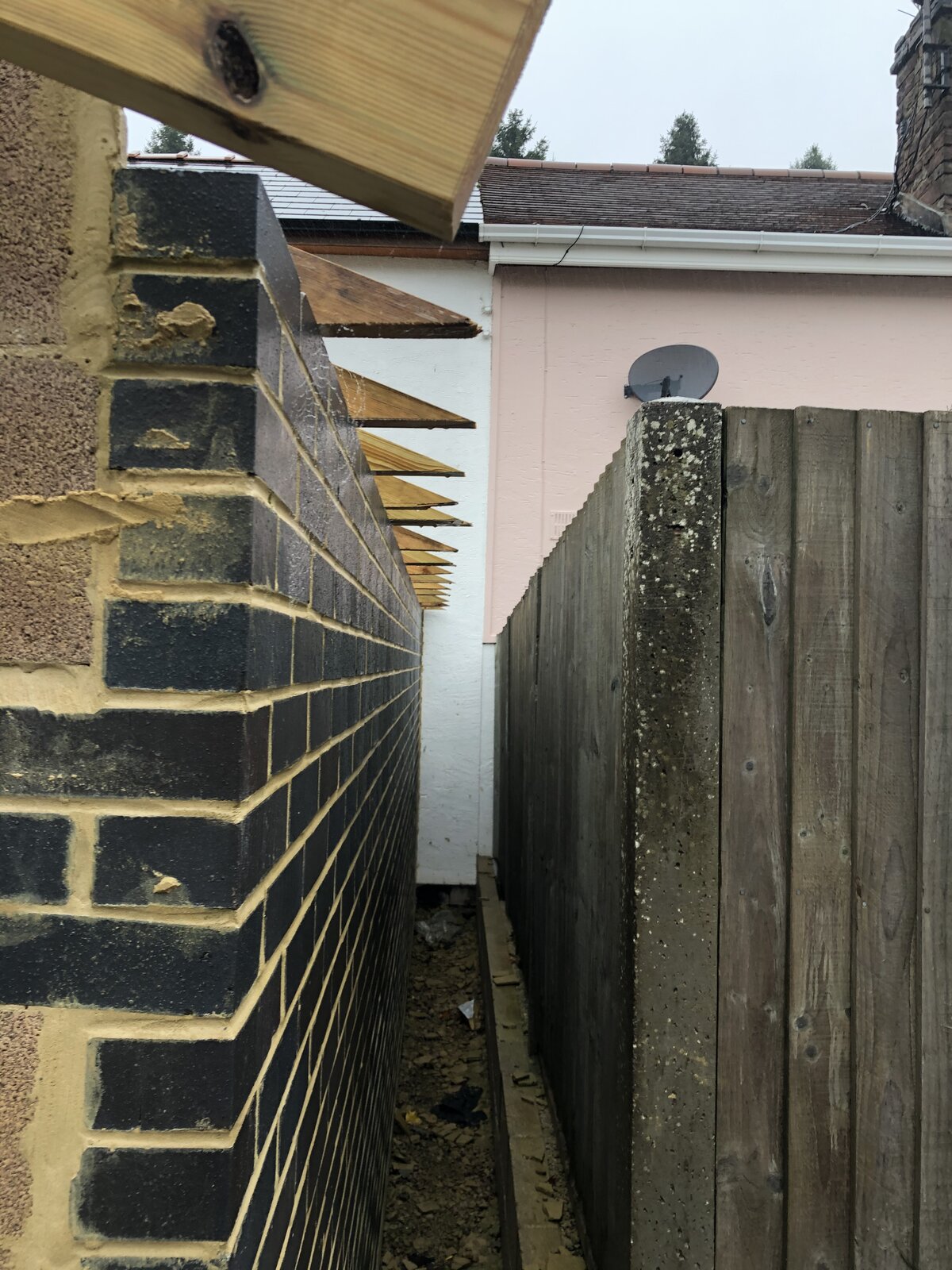 The toe of the rafter is only 220mm long from the wall but tapers to zero - so will have to be built up as too narrow to secure a facia board