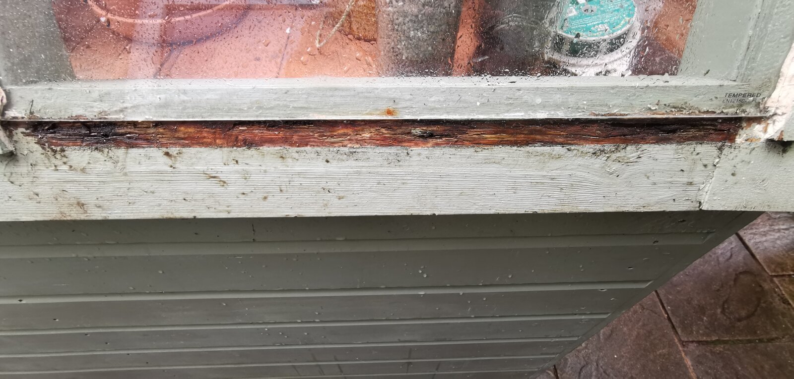 Well, I think what I'll do is just try and get out the residue that holds the water and replace with new wood ledges and keep open to allow water run off (as it did with the pcv glass)