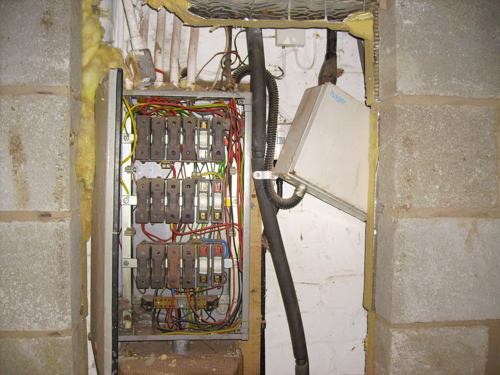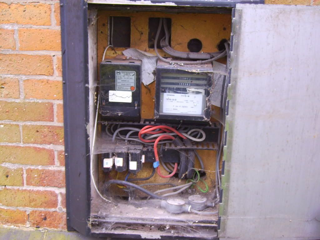 Its still live alright. It runs temporary lights and sockets around the rest of the barn. This will all come out, every scrap of wiring, the minute the new supply goes in. Then its over to one of you clever chappies to put a new lot in...