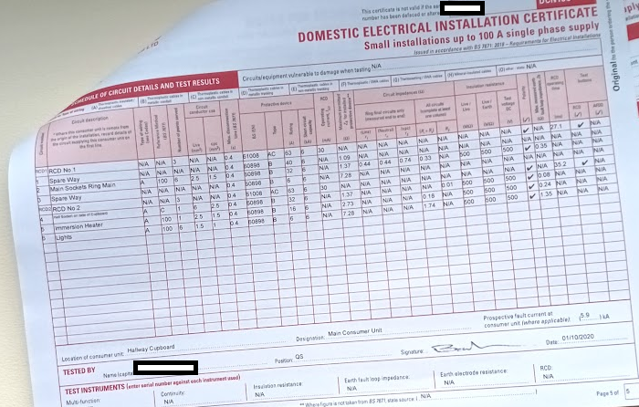 The CU was updated in November 2023 after some fault finding on one of the ring mains. I don't think I got an EIC, just the notification of works thing with the council.