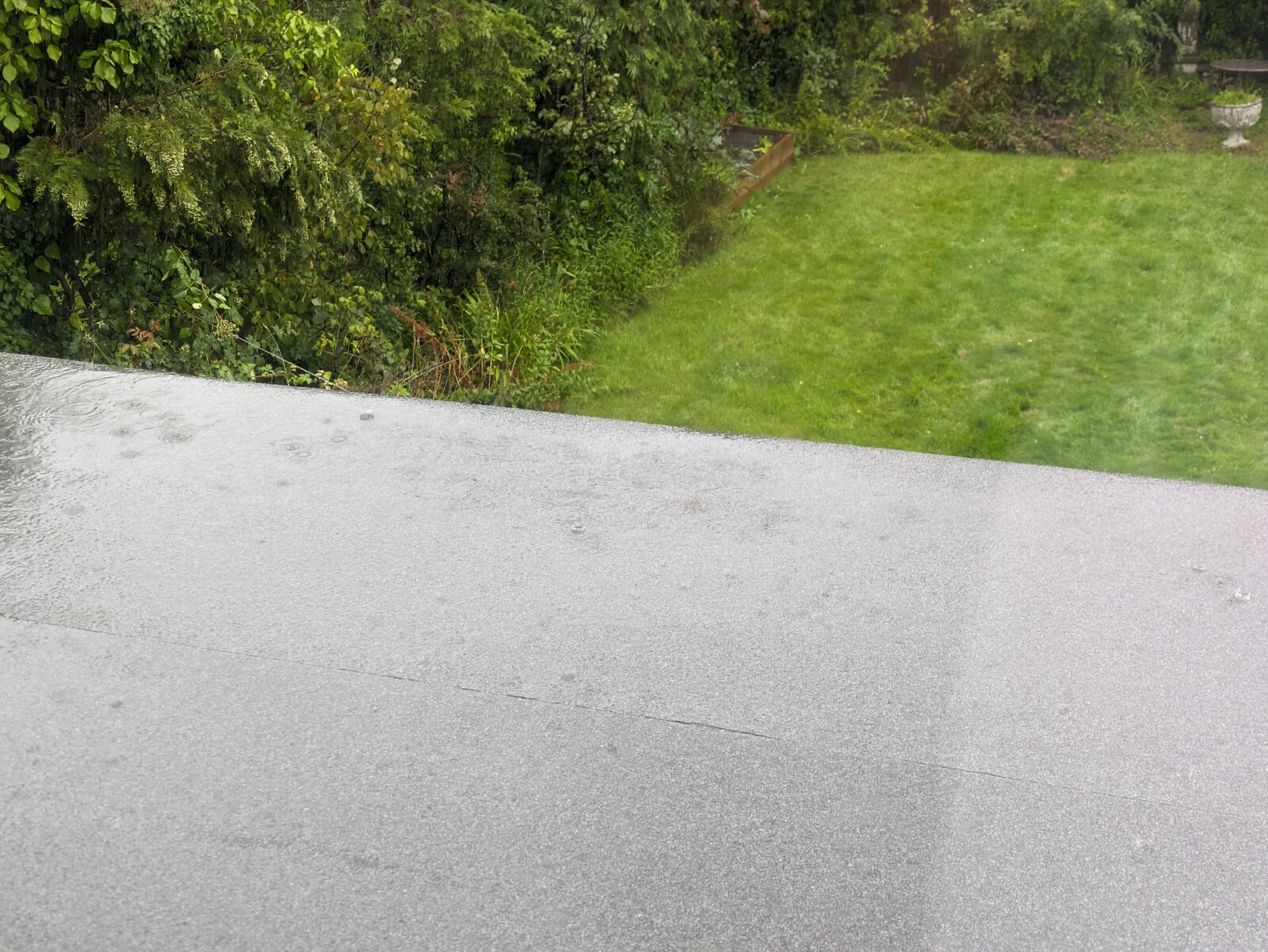 In heavy rain we've got a leak from our flat felt-topped conservatory roof that first appeared a few weeks ago.