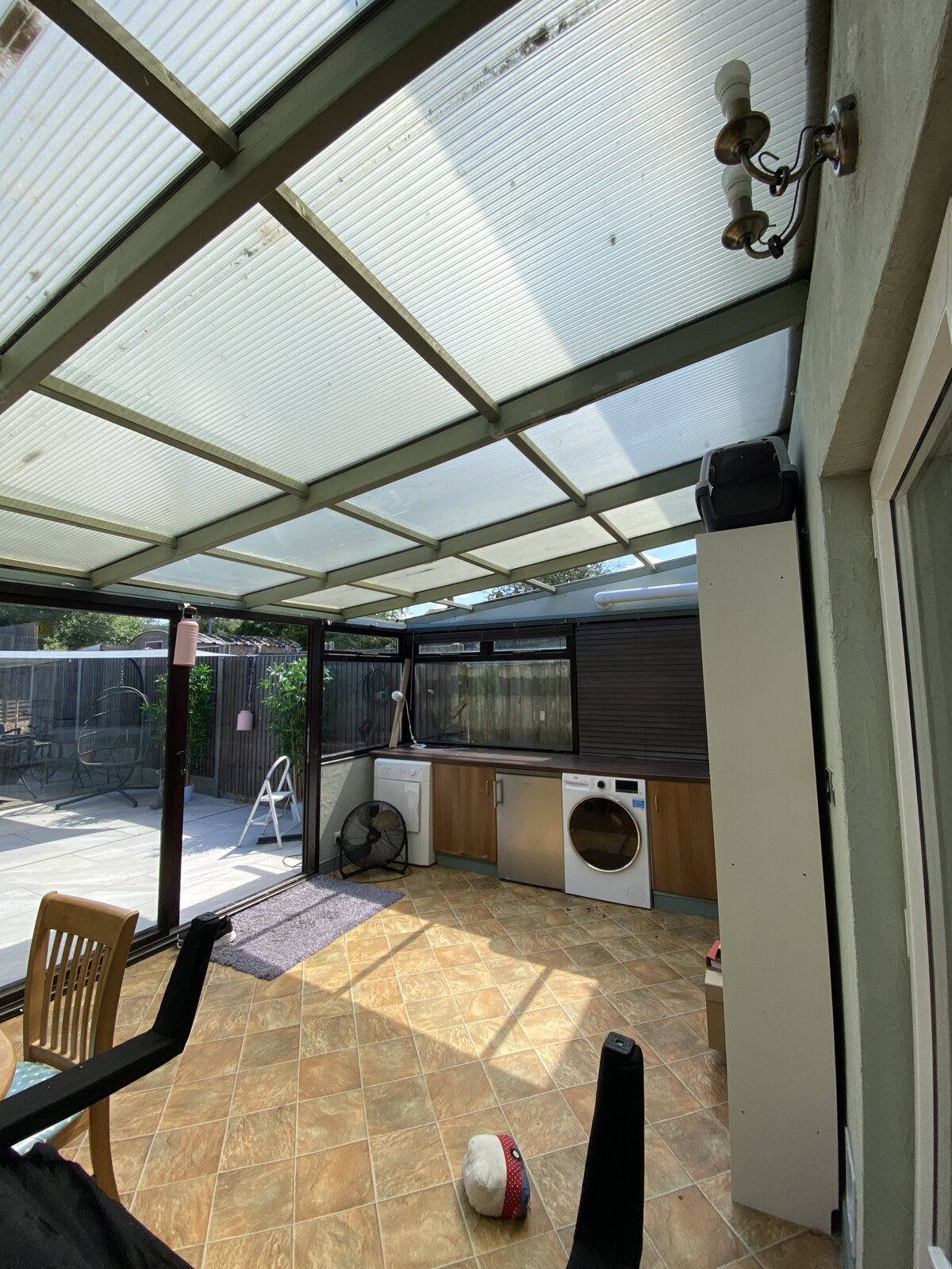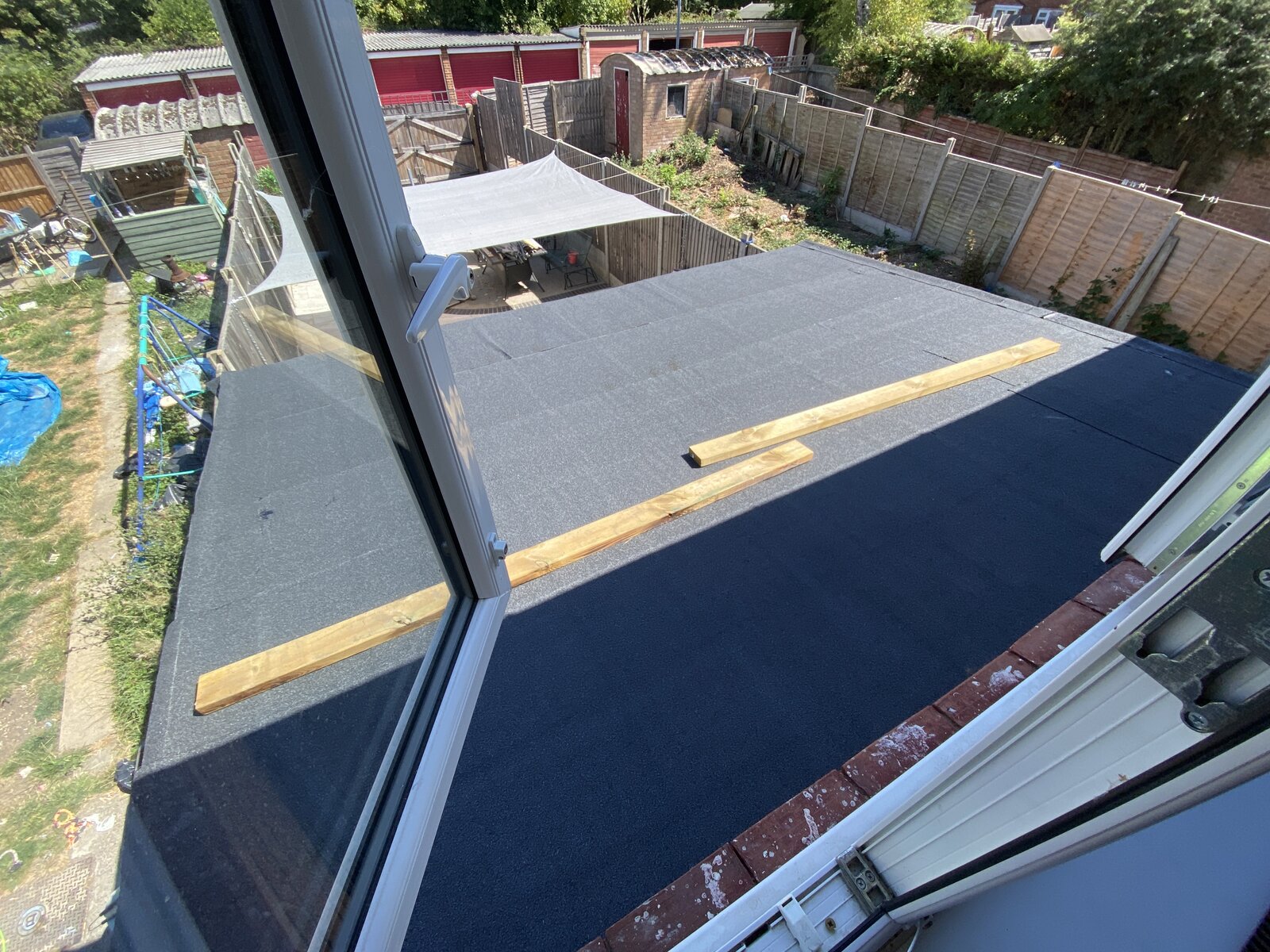 I have a lean to conservatory that had a plastic sheet roof, that was heavily leaking, so we replaced the roof frame and felted it.