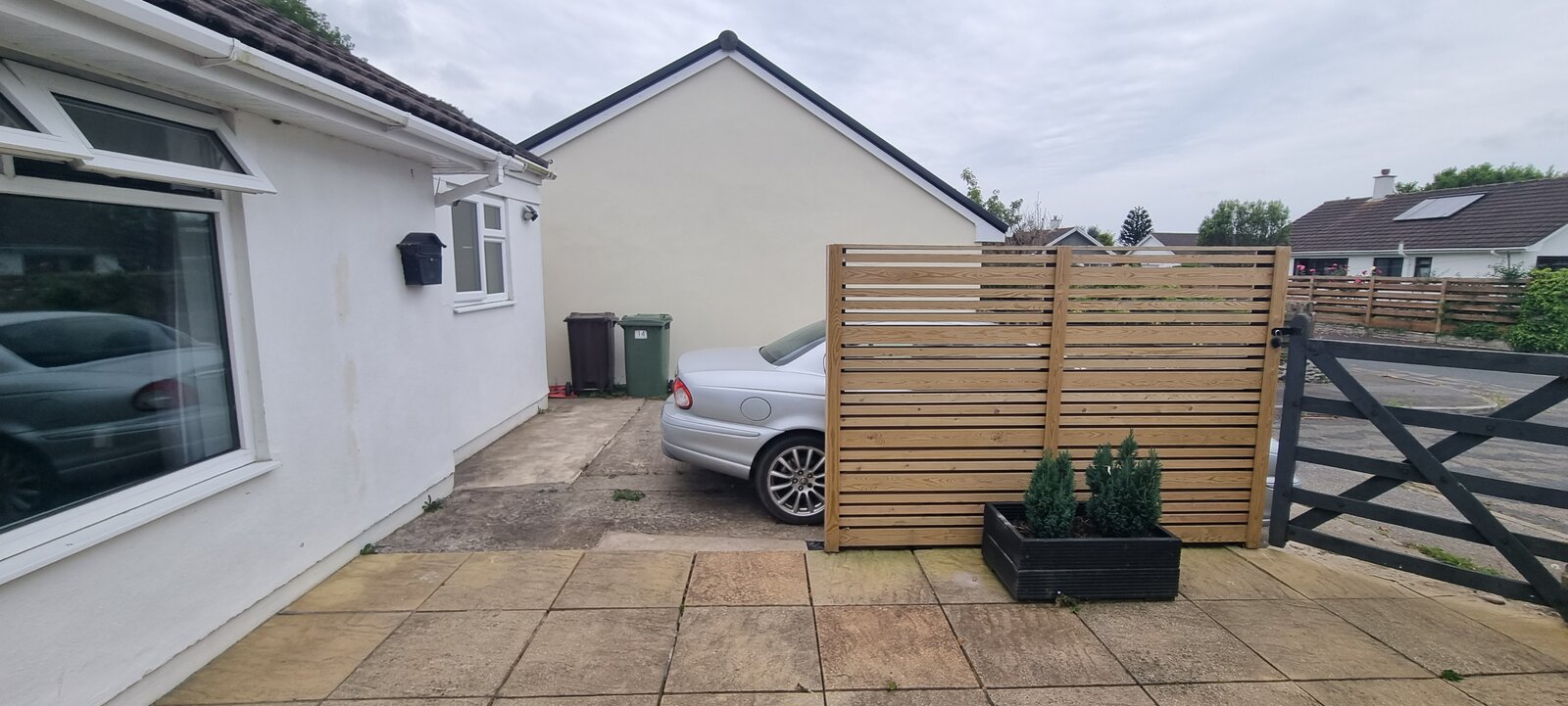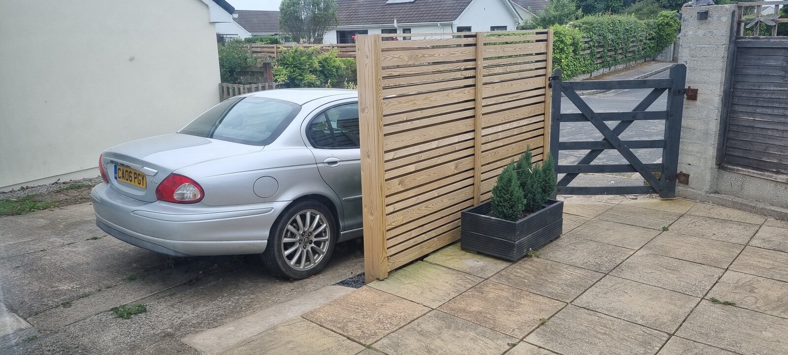 I built this fence around 2 years ago and left a gap as we had 3 cars at the time and to allow one to park on the patio area.