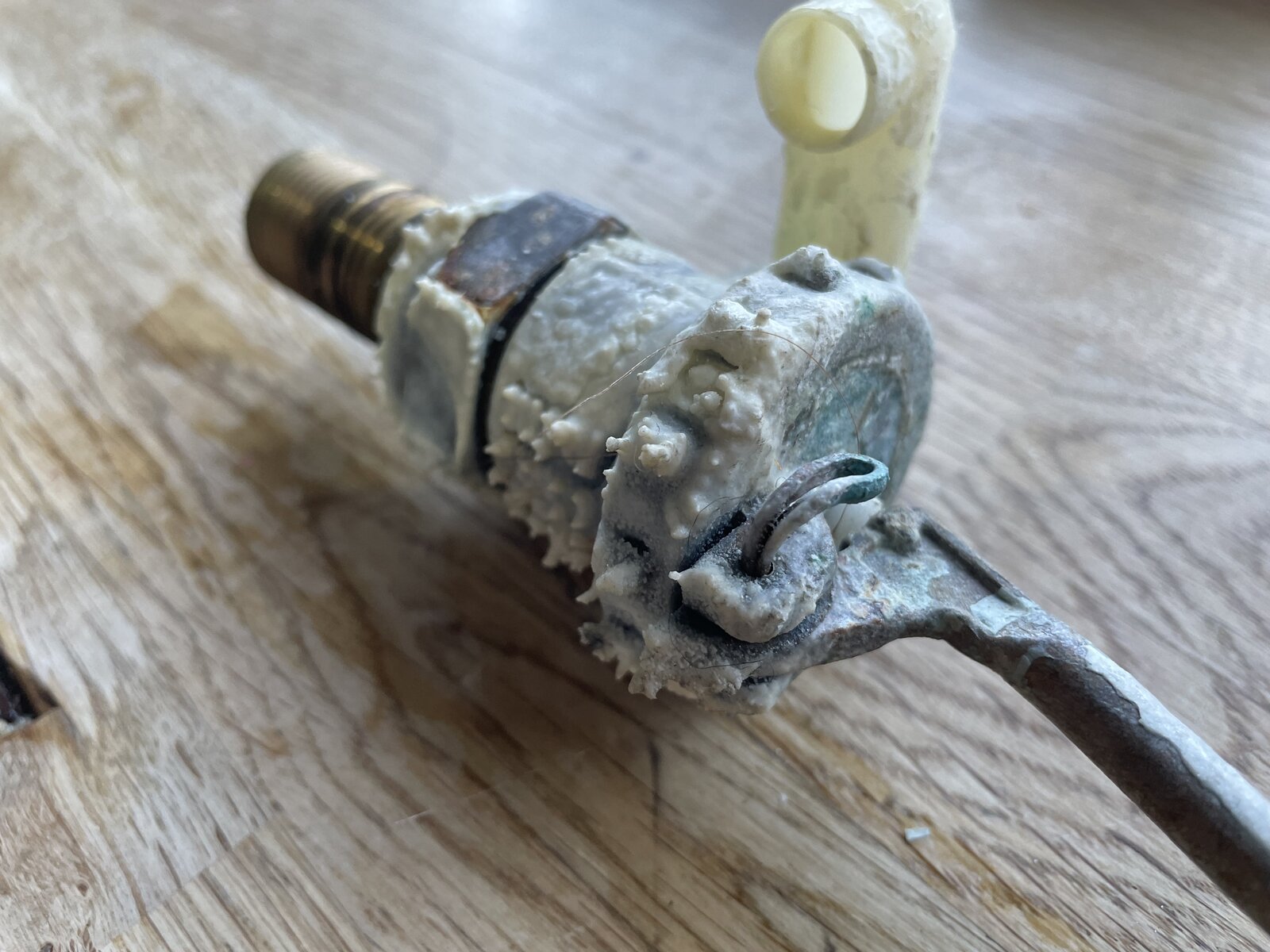 Actually I wondered if just replacing the inlet/cistern valve, which has been in place for a few years, might help and this is what I found. We’re in a very hard water area. Can hardly blow puff through the open valve.
