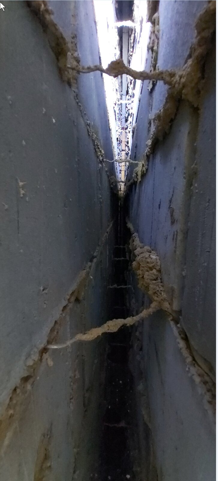 The first photo shows the cavity wall from the main house. There are two doors leading to the flat roof section. I can look into the cavity from there.