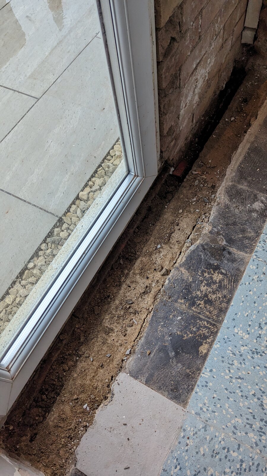 I'm replacing a door and window with some double doors. I've been left with quite a deep gap though that seems just just be crumbling brick and dirt