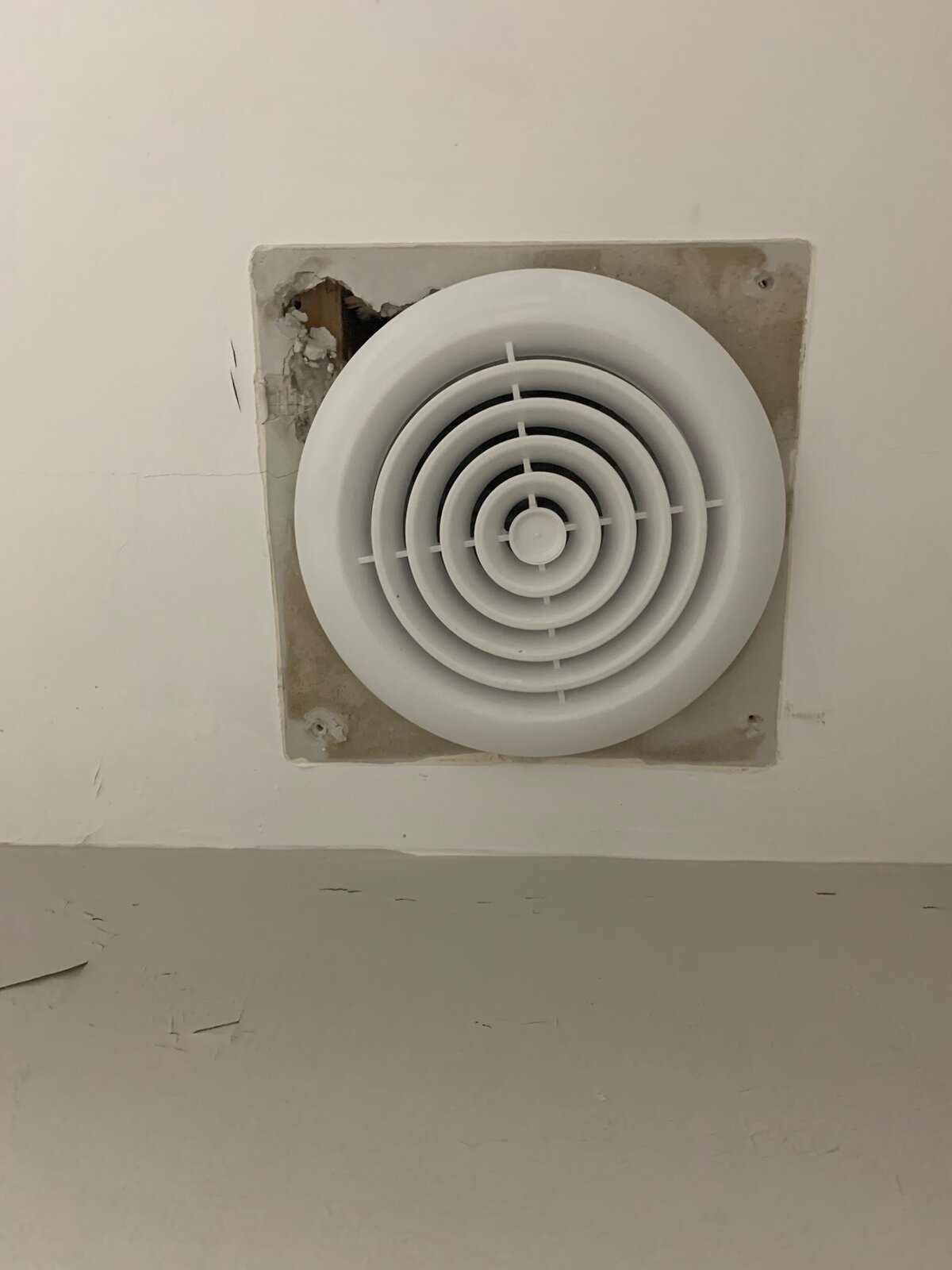 I recently had a new extractor fitted in my en-suite as the old one wasn't nearly powerful enough for a shower room with no window and the paint was coming off the walls and ceiling. The new was is an inline fan with a circular mounting on the ceiling whereas the old one had a larger, square mounting. There is a good bit of filling needs done now and I'm not sure the best way to go about it. There is actually one part that has a pretty big hole. Any tips on what to do/use would be gratefully received.