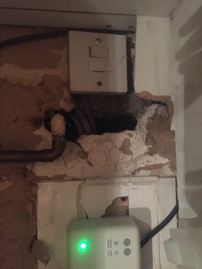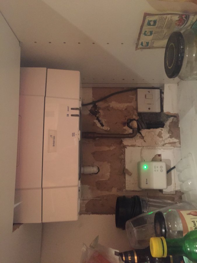 I have a rough looking walk with a couple of holes where a new boiler was fitted. Pipes exposed and electrical wires going into hive control and main switch.
