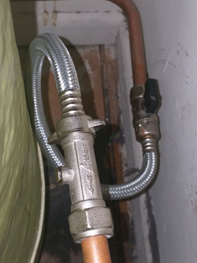 The boiler is a glow worm 15hx, which is downstairs in the kitchen, and there is a little red tank in the airing cupboard and this big green one which the filling loop is next to.