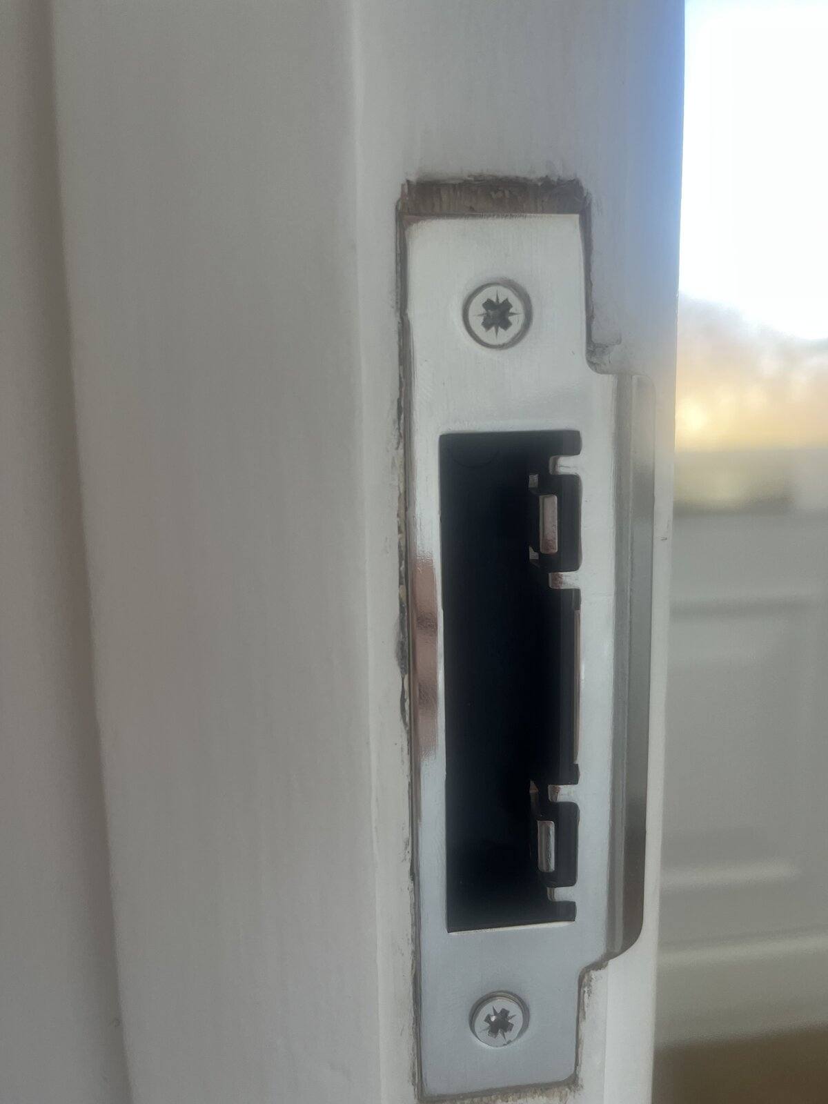 I’m left with this gap above the strike plate where things had to shift- what can I fill this with to make it look a bit neater?
