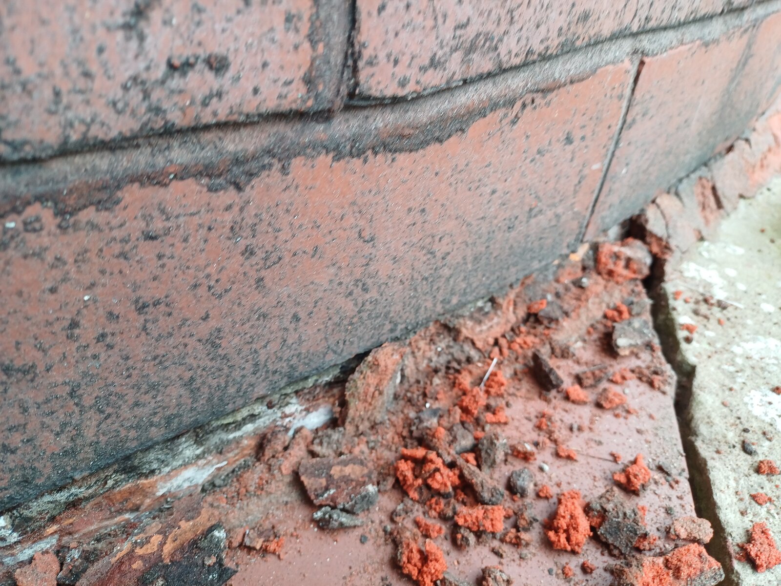 It's above ground level so nowhere near the damp course, but there is quite a gap in places.