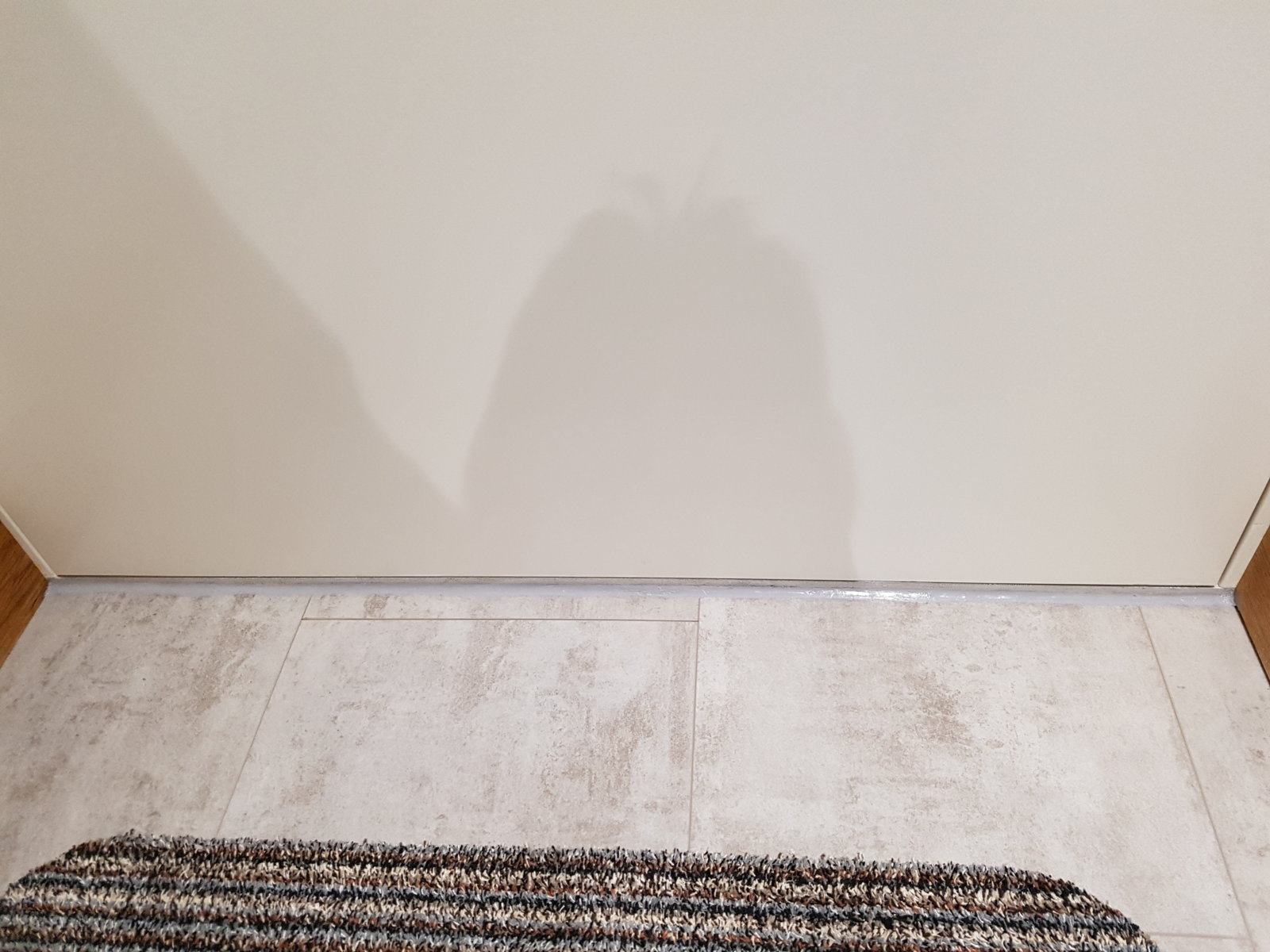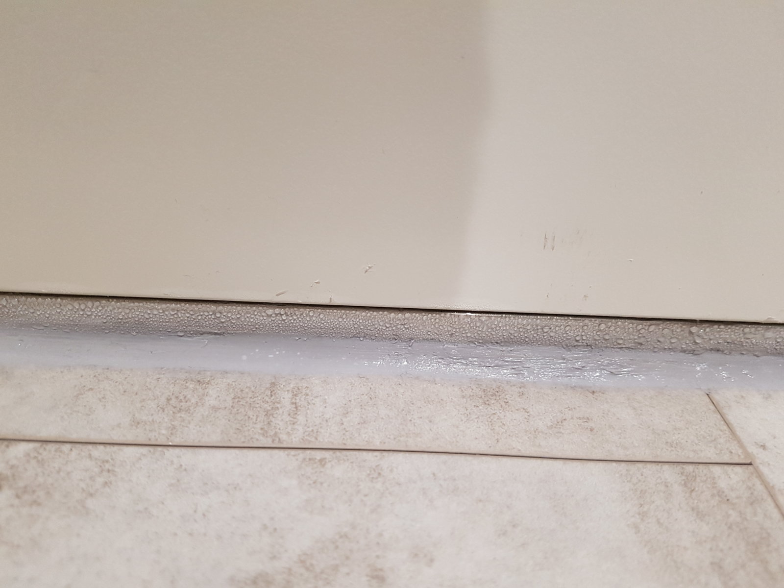 Recently moved to a new build & had quick step lvt installed. The external door in utility room has metal on bottom of frame which gets a lot of condensation. The flooring fitters had put hardwood beading against door frame but it was continuously soaked so I got them to remove it. Water had got behind beading & got to wood underneath which would have rotted eventually. Their advice was to use silicone to fill the gap.