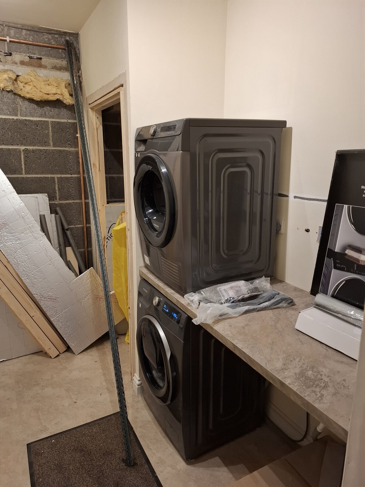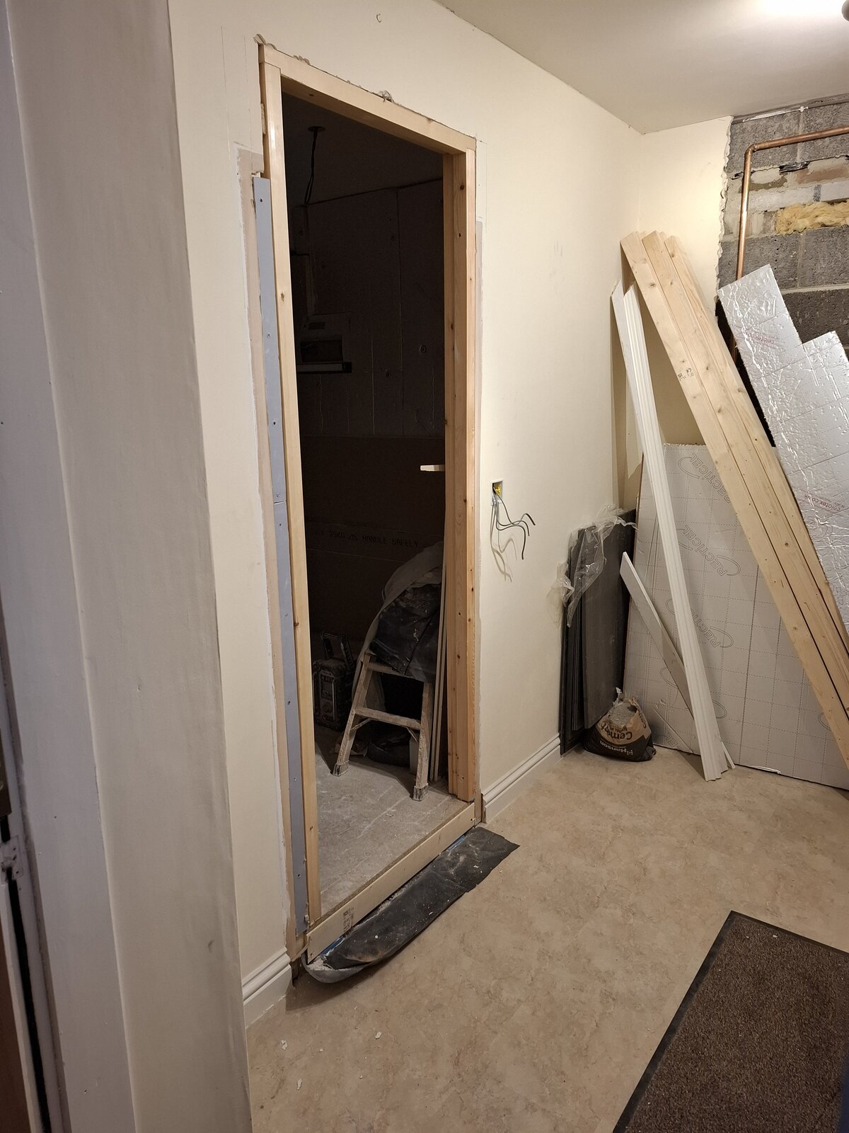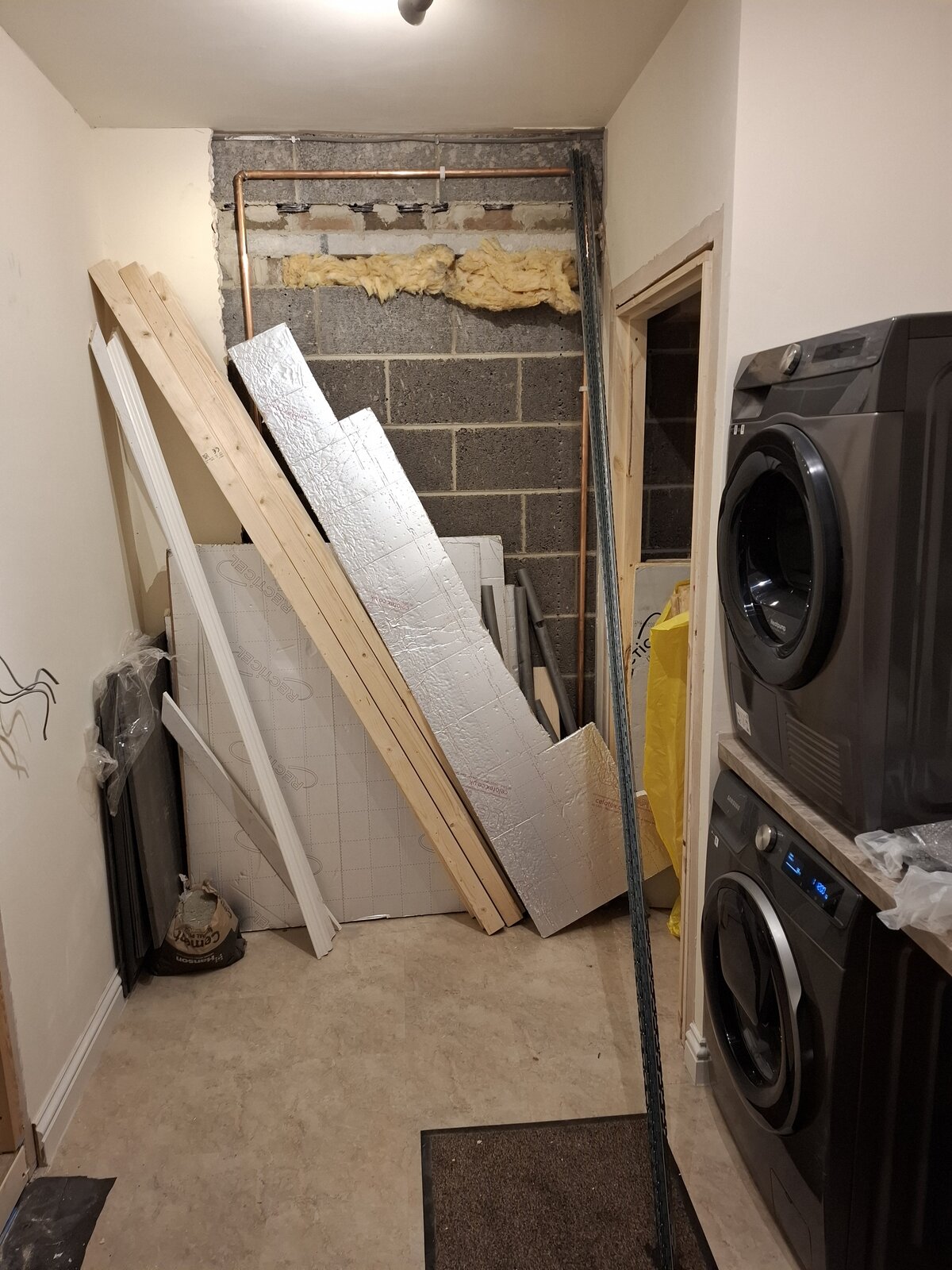 We moved into our home a few months ago and part of the garage was converted into a laundry area. There is a fire door from the hallway into the laundry. We are now converting the balance of the garage into a study, with a raised floor. In the laundry area we are keeping the floor at the existing lower level simply because it's a laundry, incase of possible water escaping from the machine. We are putting a doorway to the outside so this room can be used as a bootroom too. So my question is does the door into the new study need to have a fire door? I've attached photos to help explain. 1st photo taken from existing fire door looking into the garage conversion on left. 2nd photo is to the right where the laundry is (with a boiler cupboard on the far right). 3rd photo is where the new external door will be fitted as soon as it arrives.